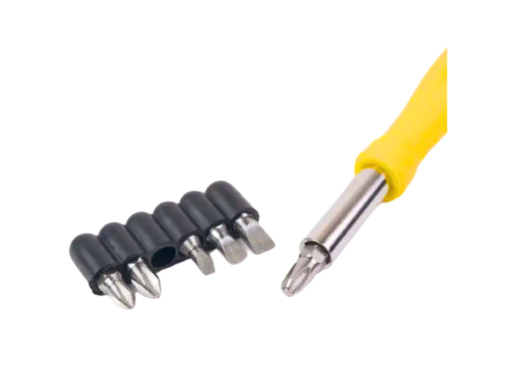 Praktická a univerzální sada nářadí je ideálním řešením pro každodenní domácí práce, kancelářské použití i hobbymaking. Sada obsahuje 10 pečlivě vybraných dílů, které poskytují základní, ale velmi funkční vybavení pro šroubování, řezání a dotahování šroubů v různých situacích.