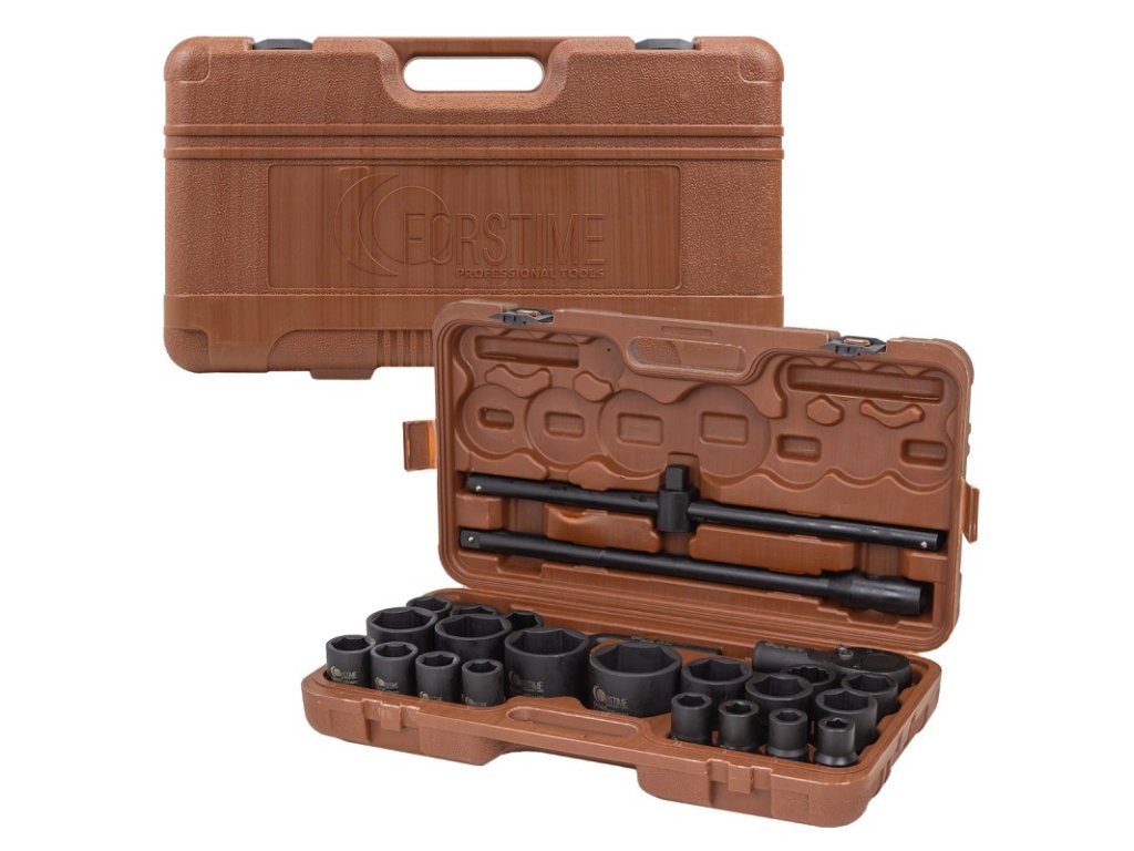 26dílná sada rázových nástrčných klíčů 3/4" + 1", 6hranné