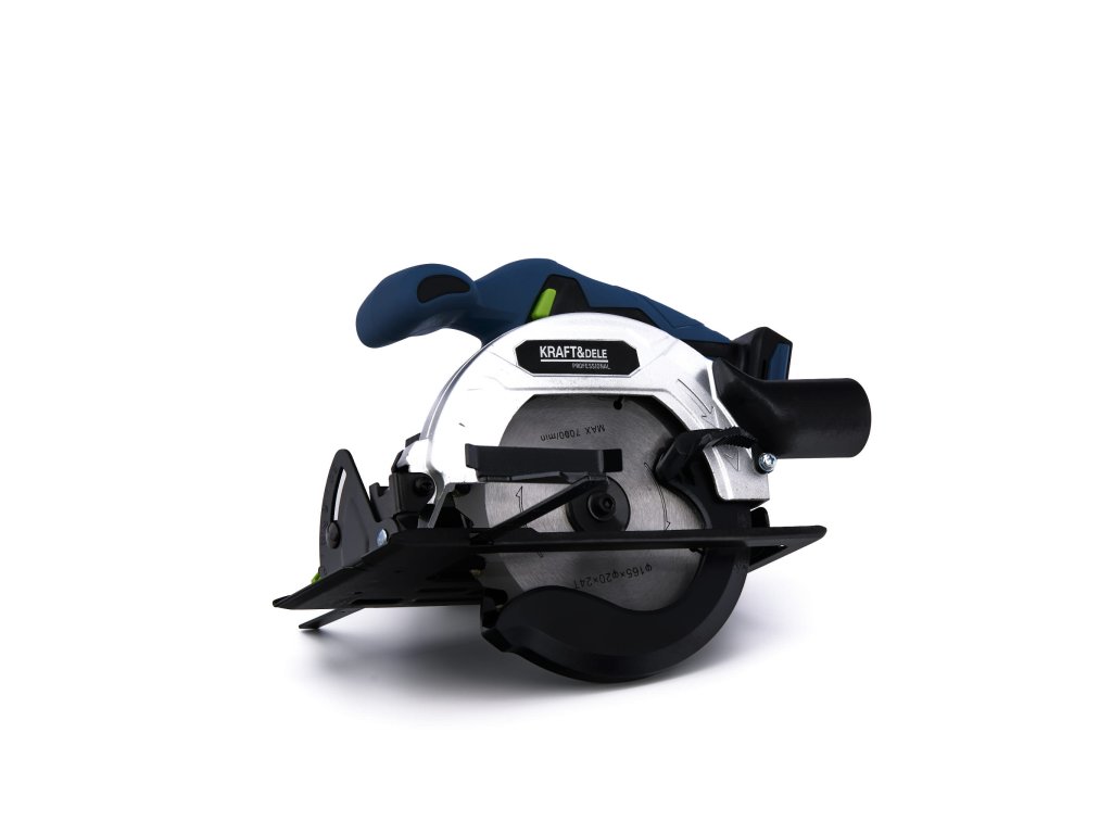 Aku okružní pila renomované značky Kraft&Dele, model KD3403, slouží k podélnému a příčnému řezání v přímce nebo pod úhlem dřeva a dřevěných materiálů. Zařízení je ideální jak pro dílny, tak pro domácí použití. Je vybavena kotoučem o průměru 165 mm. Možnost naklopení kotouče až do úhlu 50°. Maximální hloubka řezu je 56 mm, pod úhlem 45° je to 40 mm a pod úhlem 50° 36 mm.