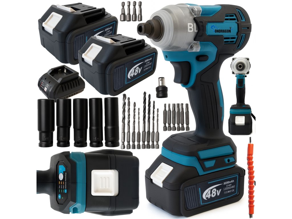 Profesionální akumulátorový rázový utahovák Ondragon je výkonný pomocník pro servisní práce, stavbu i domácí dílnu. S maximálním točivým momentem 650 Nm bez problému povolí i zarezlé šrouby a matice. Díky dvěma 48V Li-Ion akumulátorům s kapacitou 5 Ah pracujete nepřetržitě bez čekání na dobití. Utahovák je navíc vybaven sadou bitů, vrtáků a nástrčných klíčů, takže jej můžete využít i jako vrtačku. Kompaktní rozměry, nízká hmotnost a LED osvětlení zajišťují pohodlnou práci i ve stísněných a tmavých prostorech.