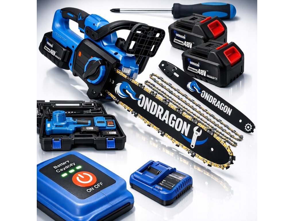Akumulátorová řetězová pila Ondragon je výkonné a kompaktní nářadí určené pro řezání dřeva, údržbu stromů i práce na zahradě nebo v domácnosti. Díky bezkartáčovému motoru poskytuje vysoký výkon, dlouhou životnost a spolehlivý provoz. Elektrický pohon bez emisí umožňuje tichou práci, což je ideální jak pro zahradní práce, tak pro použití v uzavřených prostorách.