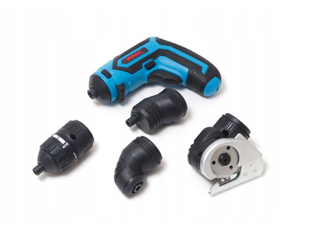 - 4 vyměnitelné nástavce: nástavec pro nastavení krouticího momentu, úhlový nástavec, excentrický nástavec, řezací nástavec