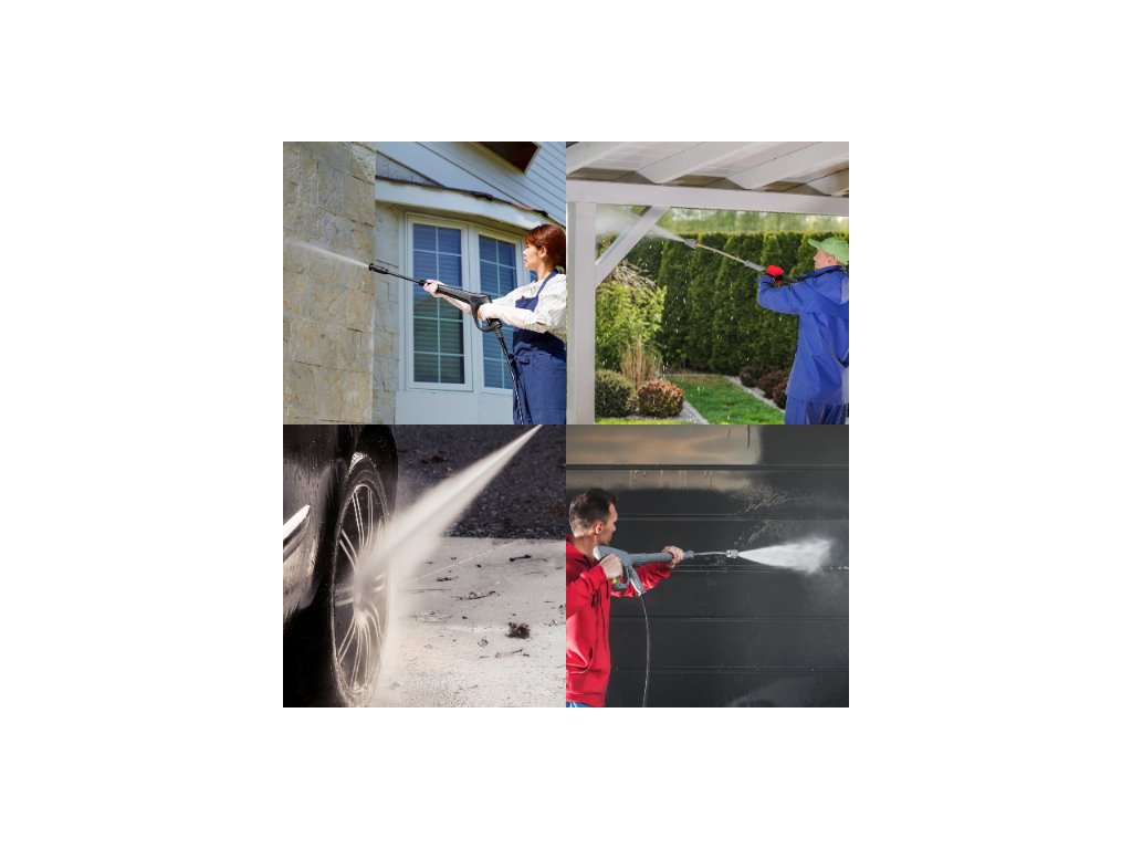 Zařízení je ideální pro mytí aut, motocyklů, kol, stejně jako pro čištění teras, zahradního nábytku a nářadí. Po nasazení rozprašovací trysky lze myčku použít i k zavlažování rostlin.