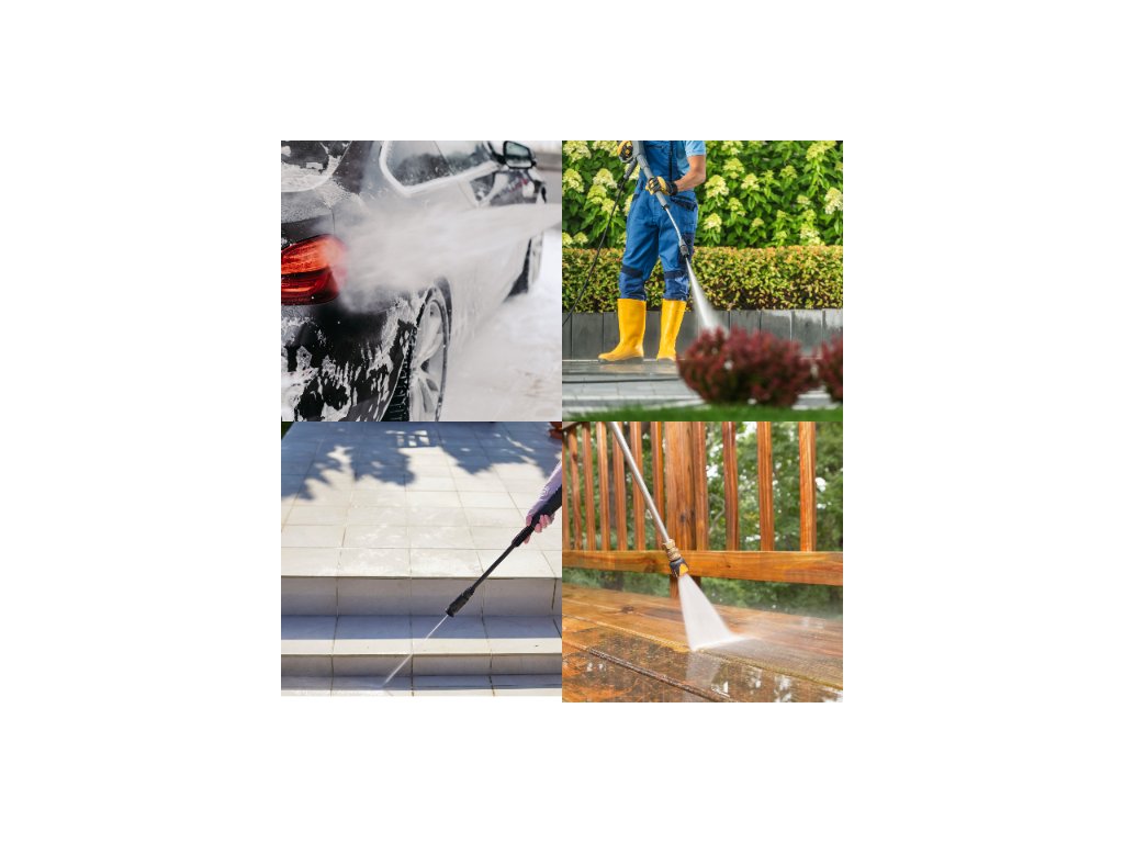 Myčka je ideální pro mytí vozidel, čištění teras, fasád, zámkové dlažby, ale i zahradního nářadí či terasového nábytku. Díky mobilitě a kompaktním rozměrům ji můžete snadno vzít s sebou například na kempování, abyste po výletě umyli turistické vybavení nebo kola.