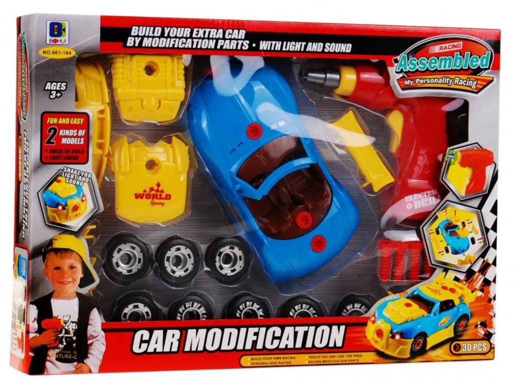 Kombinace dílny a automobilu dělá z této sada ideální vzdělávací hračku, umožňuje dítěti rozvíjet dovednosti výběru tvarů, rozlišování barev a rozvíjení fantazie. Jednotlivé součásti vozidla lze šroubovat pomocí šroubováku napájeného z baterie nebo ručního šroubováku.