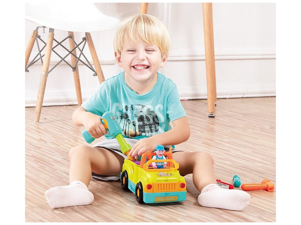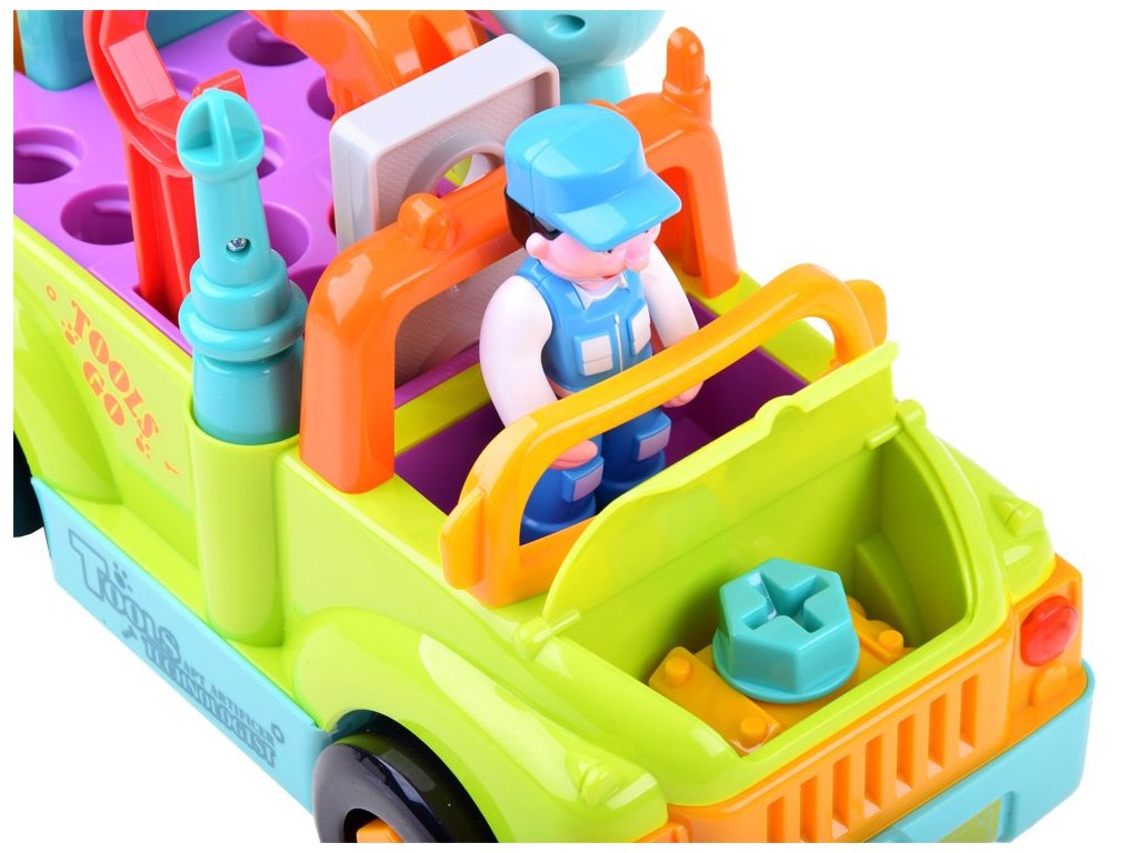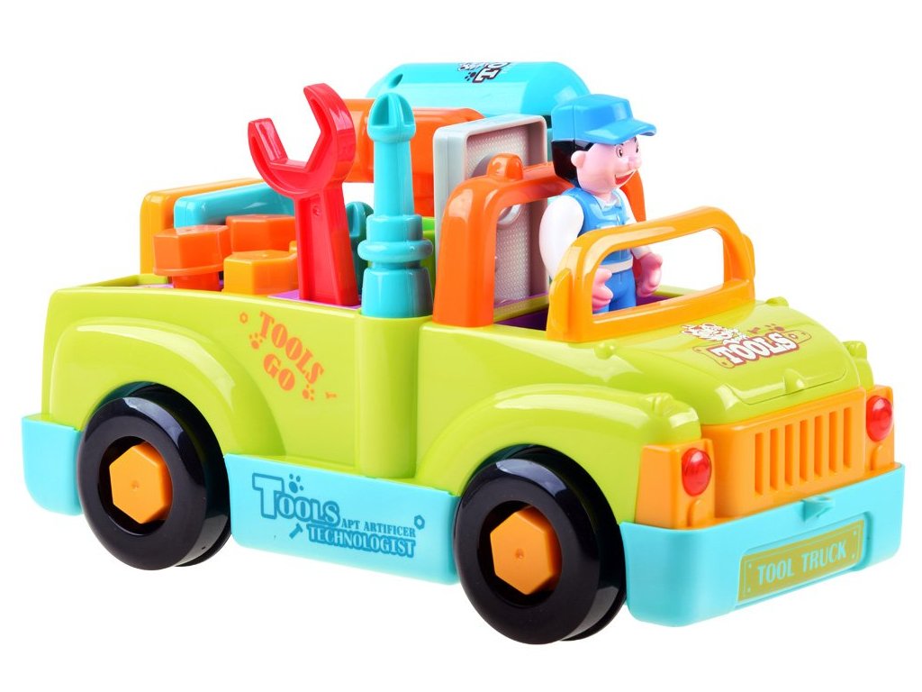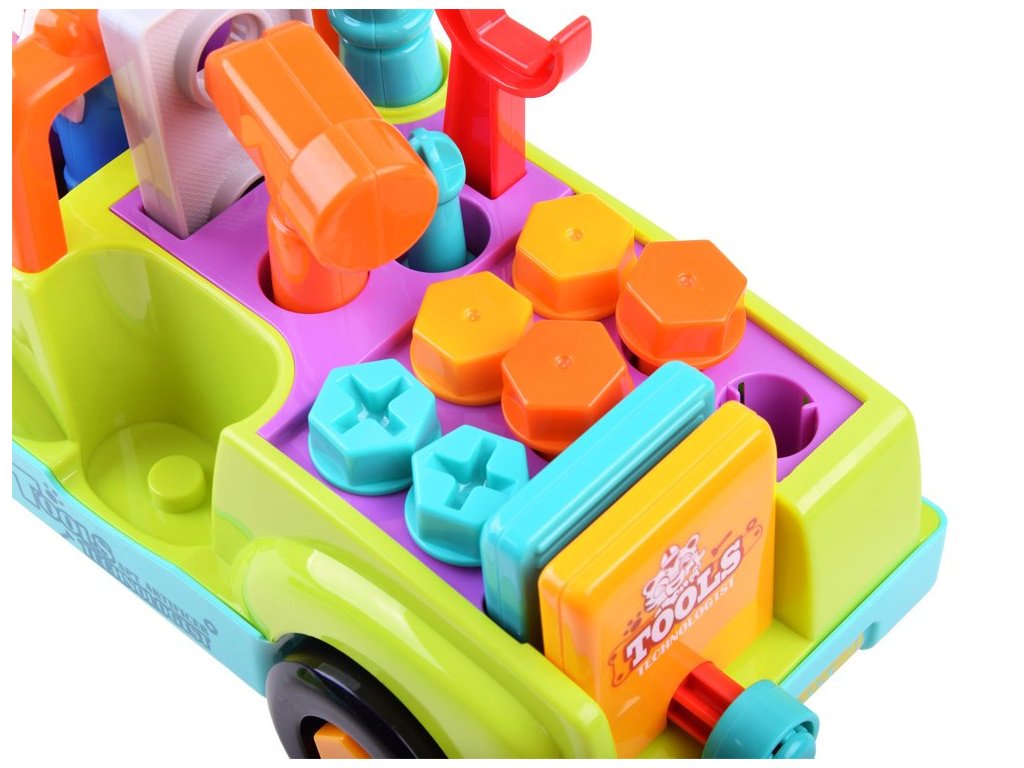 Víceúčelová a vzdělávací hračka pro malé mechaniky. Auto pro nejmenší s nářadím dokáže samostatně jezdit a měnit směr pohybu při detekci překážky. Dítě může také hračku ovládat. Během jízdy hraje veselá hudba (možnost vypnutí) a přední světla blikají. Ideální hračka pro nejmladší automechaniky a kutily.