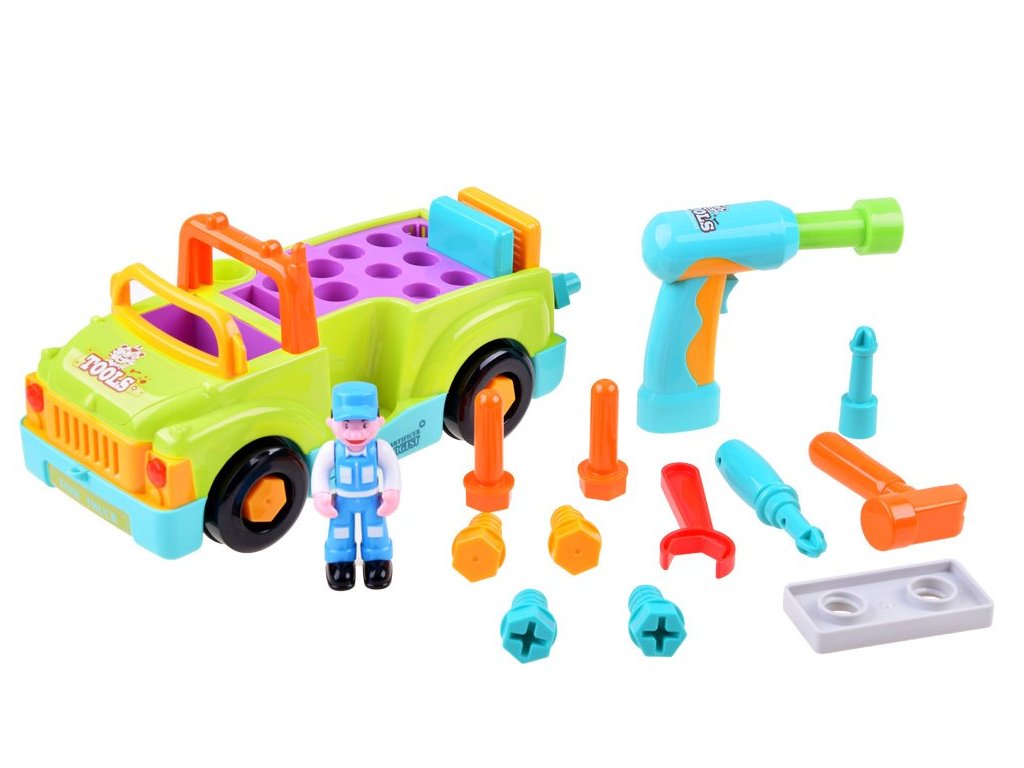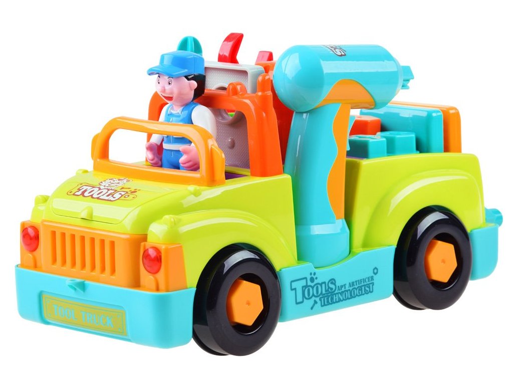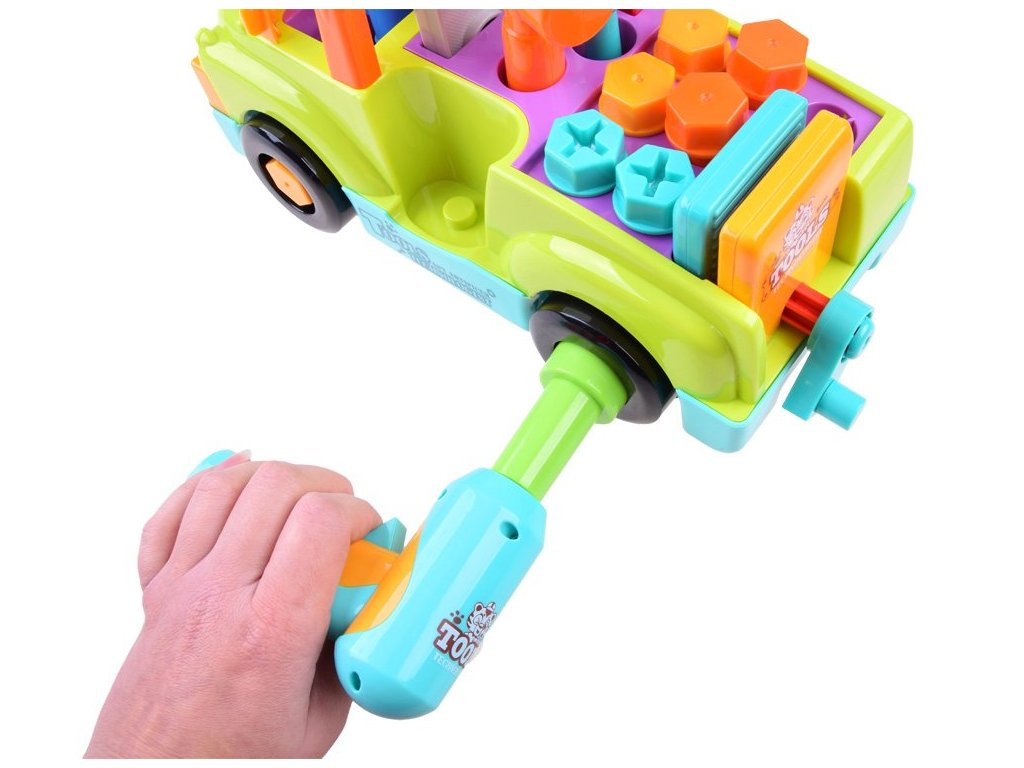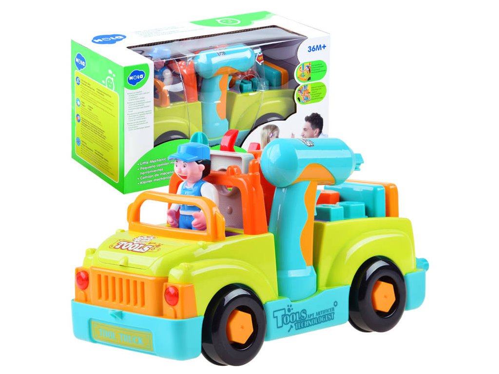 Víceúčelová a vzdělávací hračka pro malé mechaniky. Auto pro nejmenší s nářadím dokáže samostatně jezdit a měnit směr pohybu při detekci překážky. Dítě může také hračku ovládat. Během jízdy hraje veselá hudba (možnost vypnutí) a přední světla blikají. Ideální hračka pro nejmladší automechaniky a kutily.