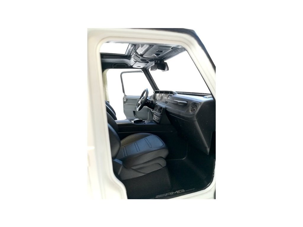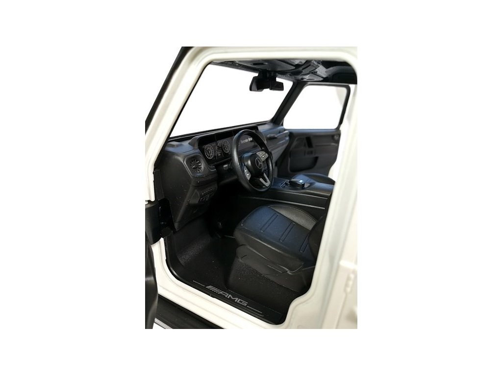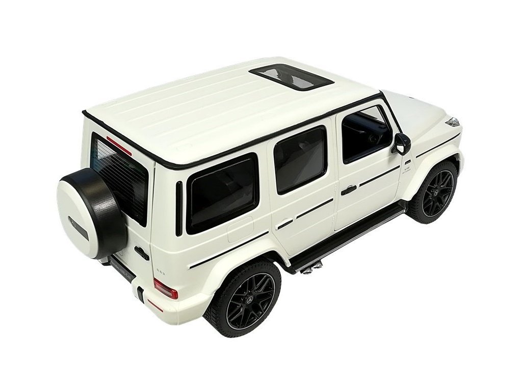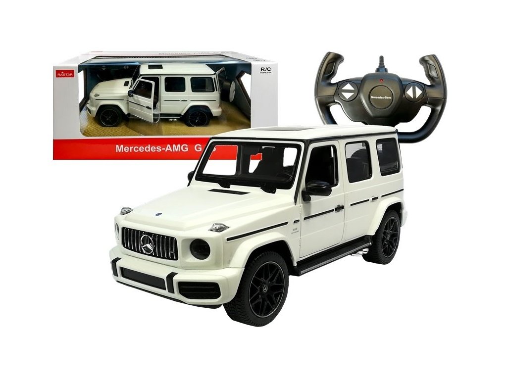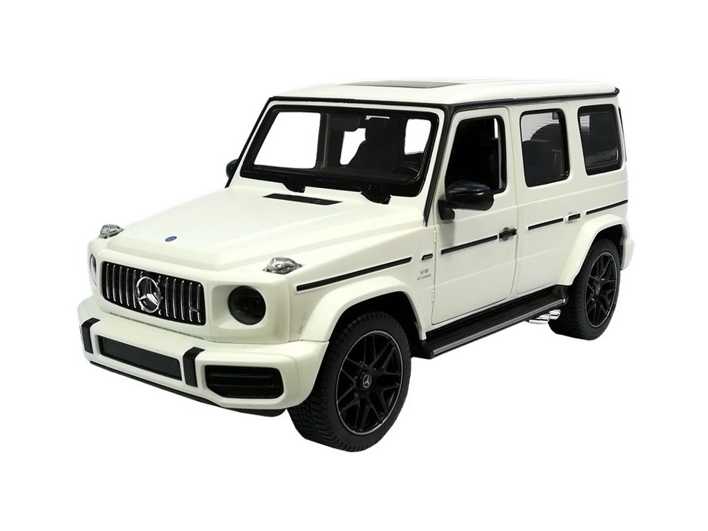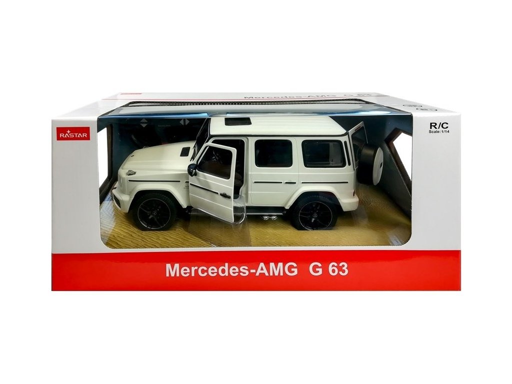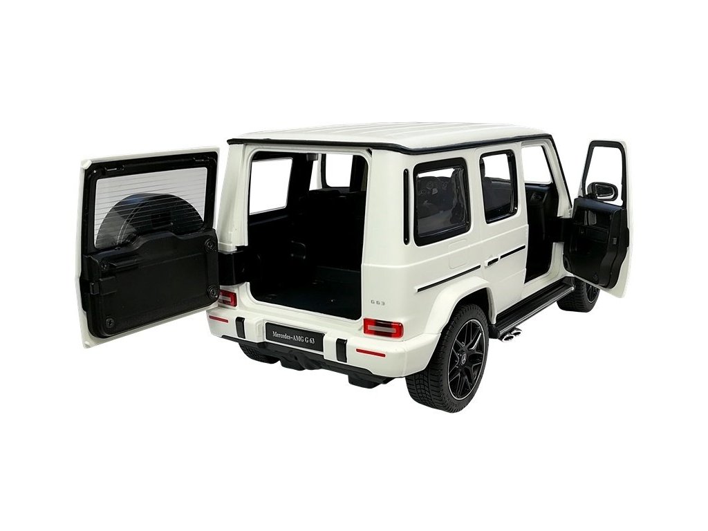 Dálkově ovládané auto Mercedes G63 v bílé barvě je autentickou replikou v měřítku 1:14. Auto se pohybuje dopředu, dozadu, zatáčí a brzdí pomocí dálkového ovládání. Díky svému terénnímu charakteru jej lze používat v interiéru i exteriéru. Světla na vozidle se aktivují při jízdě. Dveře vozidla se otevírají ručně, interiér a podvozek vozidla jsou navrženy s velkou pečlivostí tak, aby odpovídaly originálnímu vozidlu.