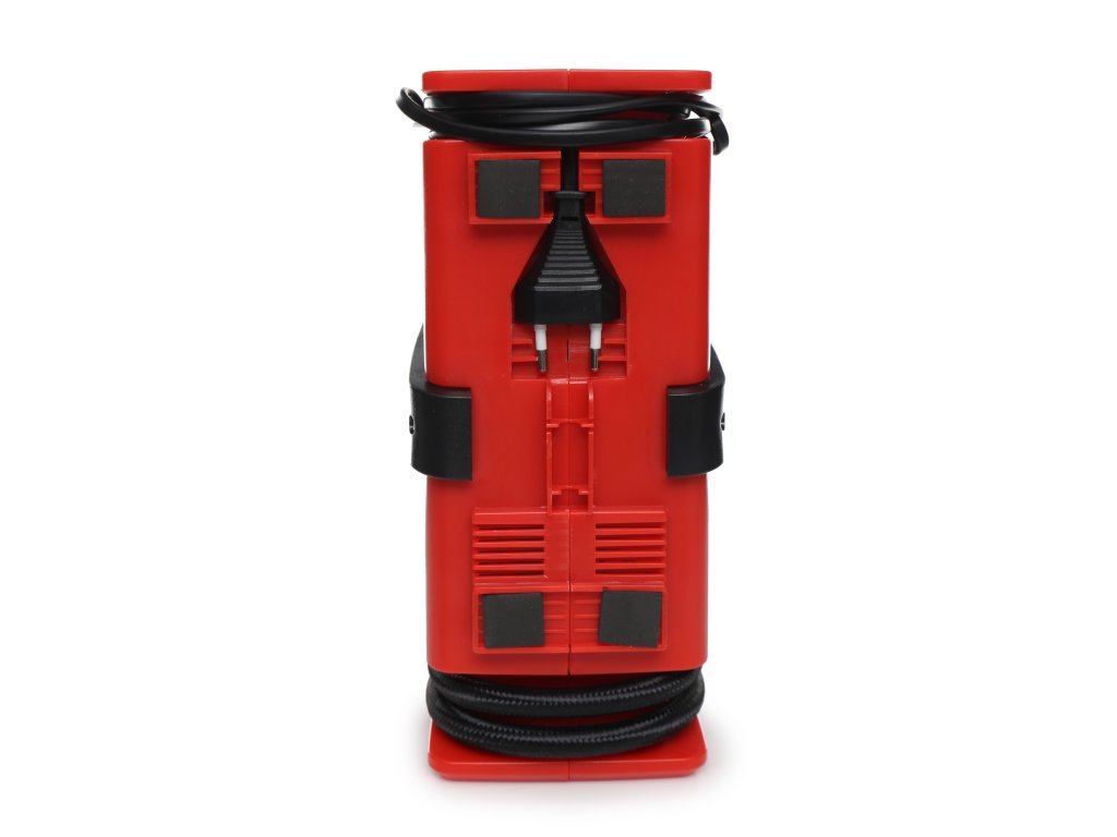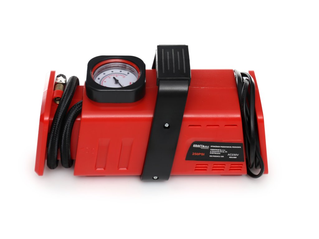 Kompresor může být napájen ze zásuvky automobilového zapalovače 12V DC i ze zásuvky sítě 230V AC.
