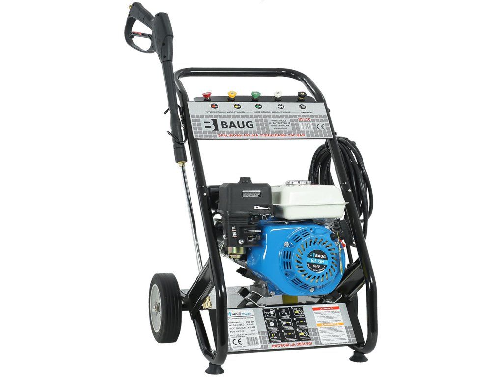 Myčka vysokotlaková benzínová BAUG je praktické a funkční čistící zařízení. Její kompaktní konstrukce, výkon a praktičnost jsou hlavními přednostmi. Tento produkt je ideální všude tam, kde není přístup k elektrické síti. Myčka má široké využití, například pro mytí vozidel, střech, fasád, průmyslových prostor, strojů atd. Navíc 4 stříkací koncovky umožňují rychlé a snadné přepínání rozstřikových schémat od bodového až po širokoúhlé pro přesné čištění a jedna koncovka na pěnování. Vysokotlaká hadice o délce 10 m umožňuje čištění na větší vzdálenosti bez nutnosti přemisťování myčky.
