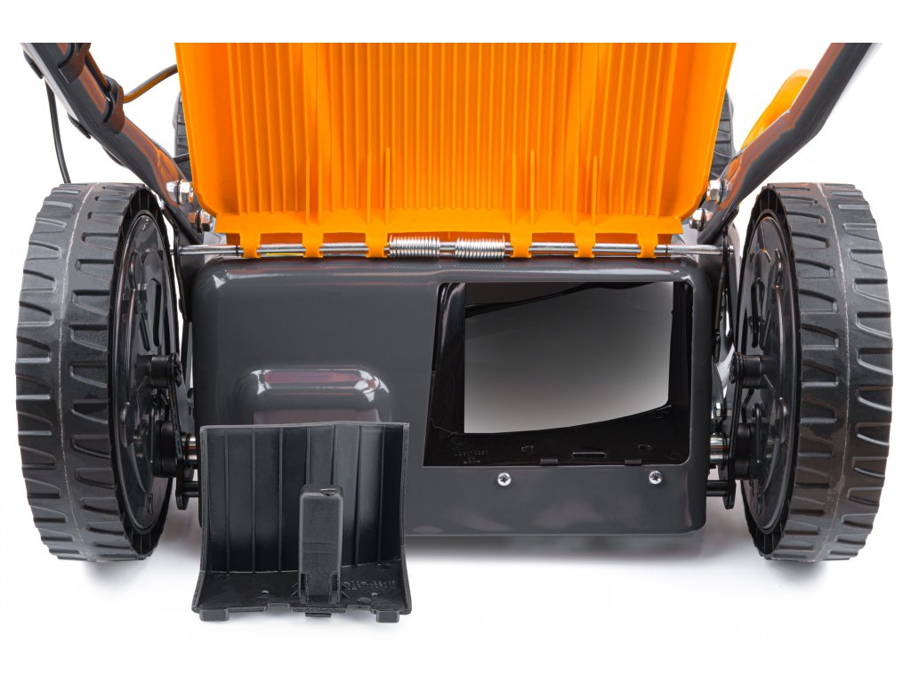 - Moderní design skříně - zajišťuje lepší efektivitu sečení a sbírání trávy.
