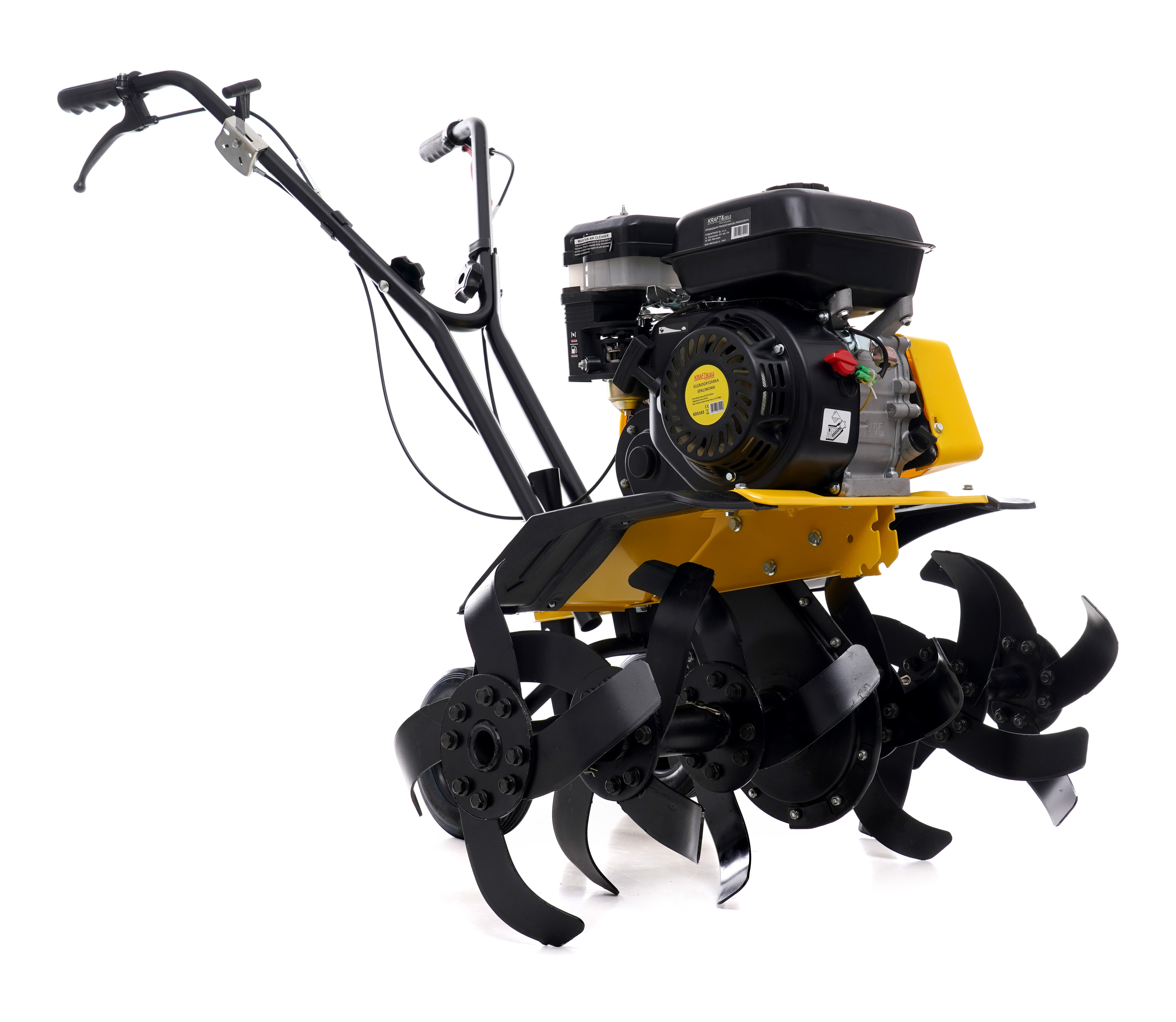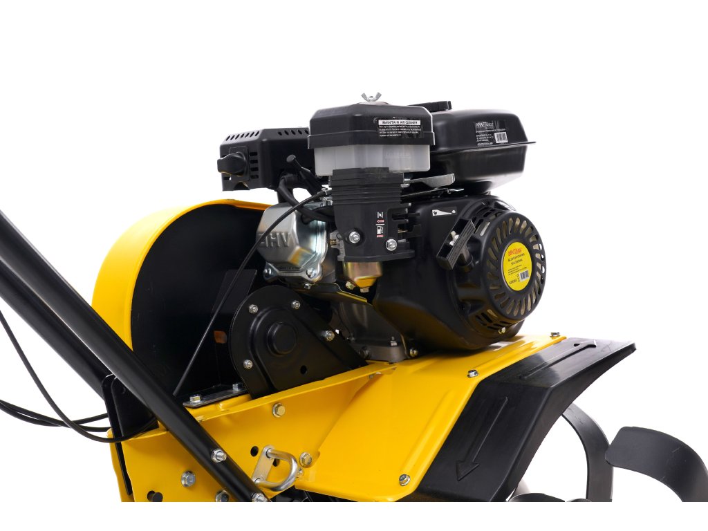 Benzínový kultivátor KD5163 je vybaven motorem s výkonem 6,5 HP. Pracovní část má sadu řezacích nožů, které se samovolně zakousnou do půdy.