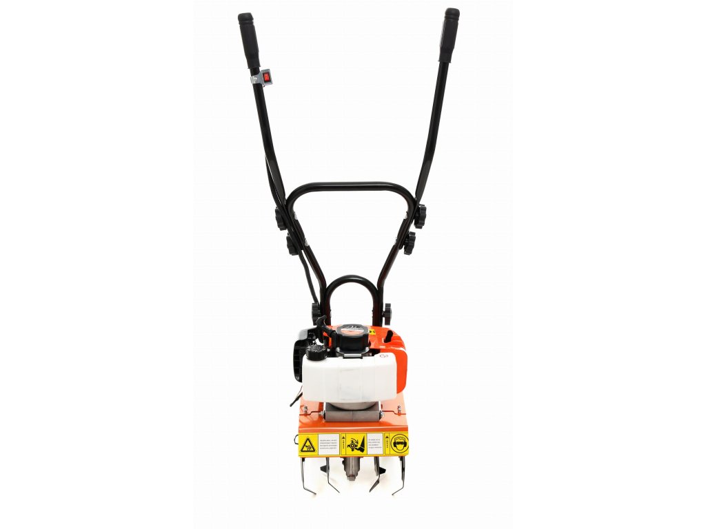 Spalinový rotavátor KD5162 je vybaven motorem s výkonem 7 km. Pracovní část tvoří sada řezných nožů, které se samovolně zabořují do půdy.