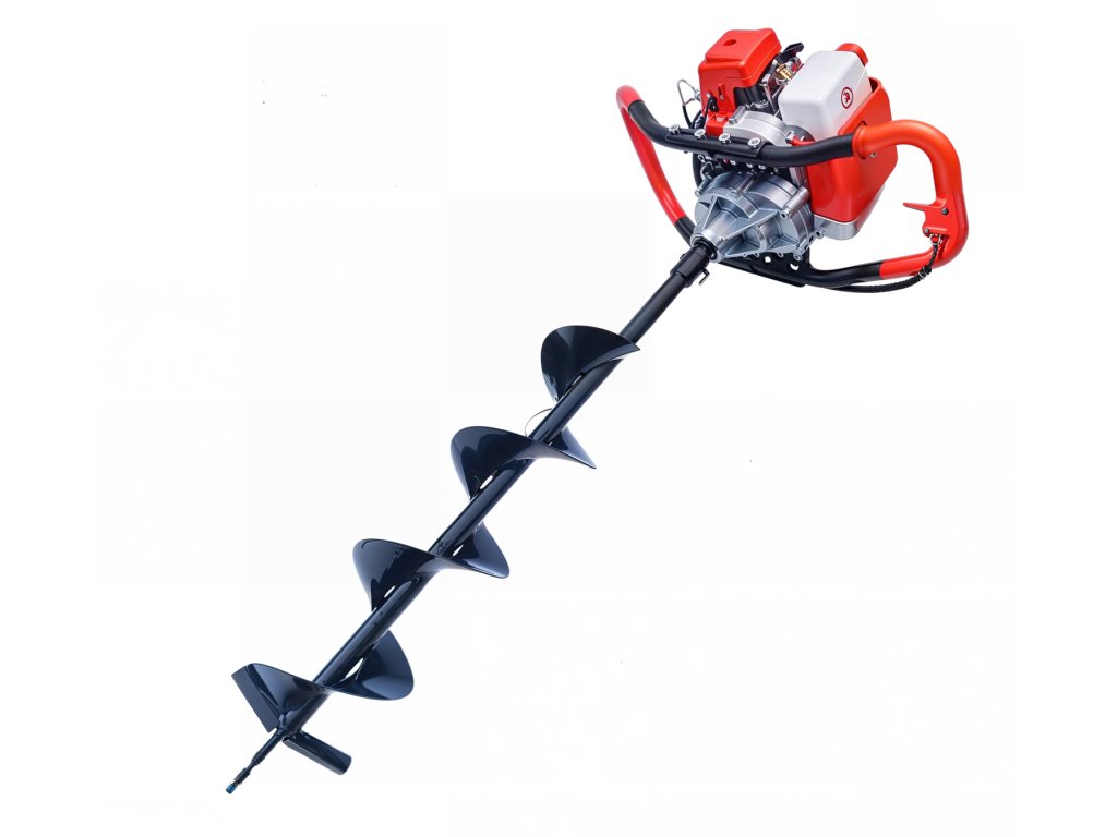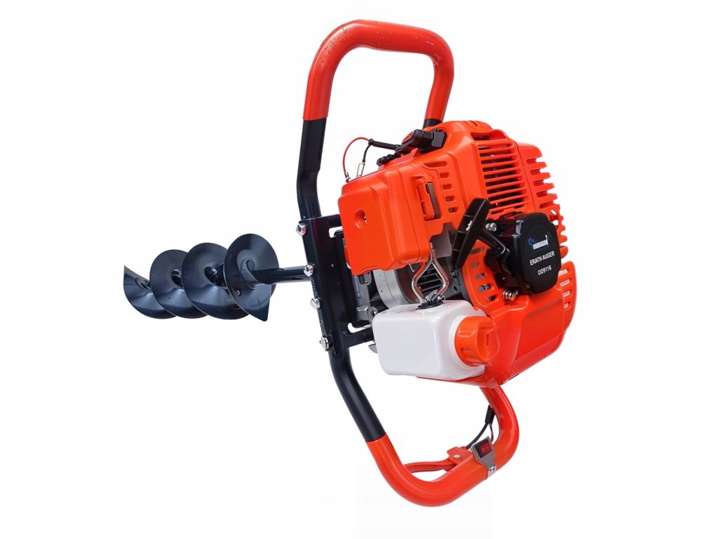 Benzinový zemní vrták s výkonem 3,8 kW je ideálním pomocníkem pro vrtání děr do půdy při instalaci sloupků, výsadbě stromků nebo pokládce kabelů. Díky třem vyměnitelným vrtákům různých průměrů a prodloužení 60 cm lze vrtat do různých hloubek a přizpůsobit se konkrétním potřebám. Titanová převodovka a pevné ocelové vrtáky zaručují dlouhou životnost.