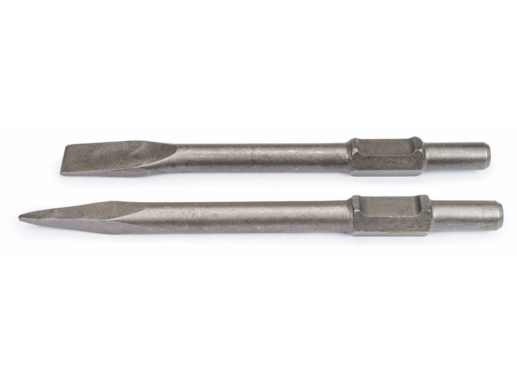 - Typ držáku HEX (šestihranný) zajišťuje vysokou odolnost příslušenství pro sekání. Pevné uchycení díky zajištění s čepem je důležité vzhledem k velké síle úderu kladiva.