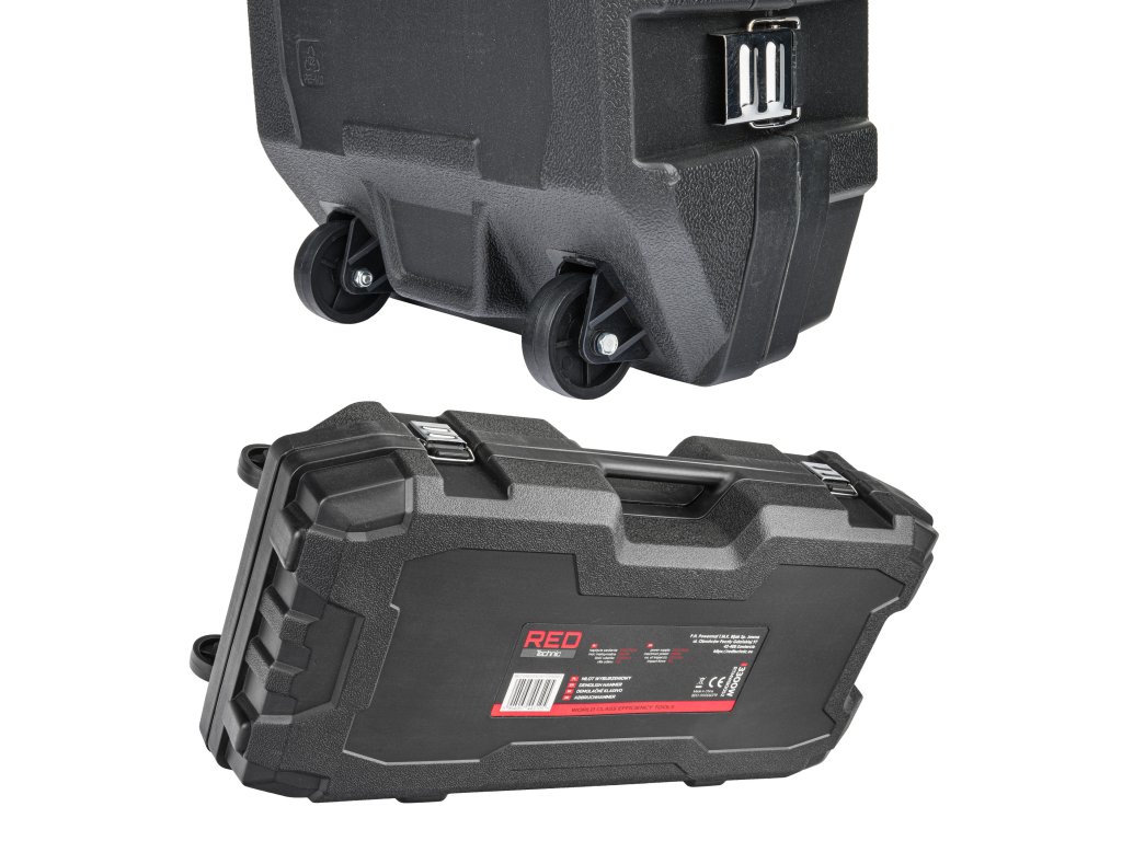 Díky mimořádně pevnému kufříku vybavenému kolečky se přenášení celého setu stává mnohem jednodušším. Kufřík je opatřen dvěma uchopy: jeden umožňuje horizontální přenášení, druhý slouží k tahání po zemi ve vertikální poloze. Tato konstrukce dále zvyšuje mobilitu kufříku během přepravy. Pro maximální zabezpečení obsahu je kufřík vybaven dva kovovými západkami. Kromě toho, kufřík také funguje jako organizér na nástroje, což pomáhá udržovat pořádek.