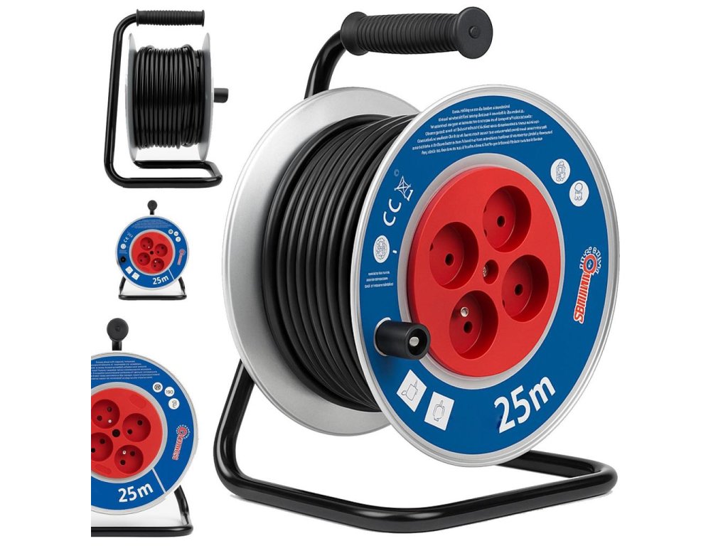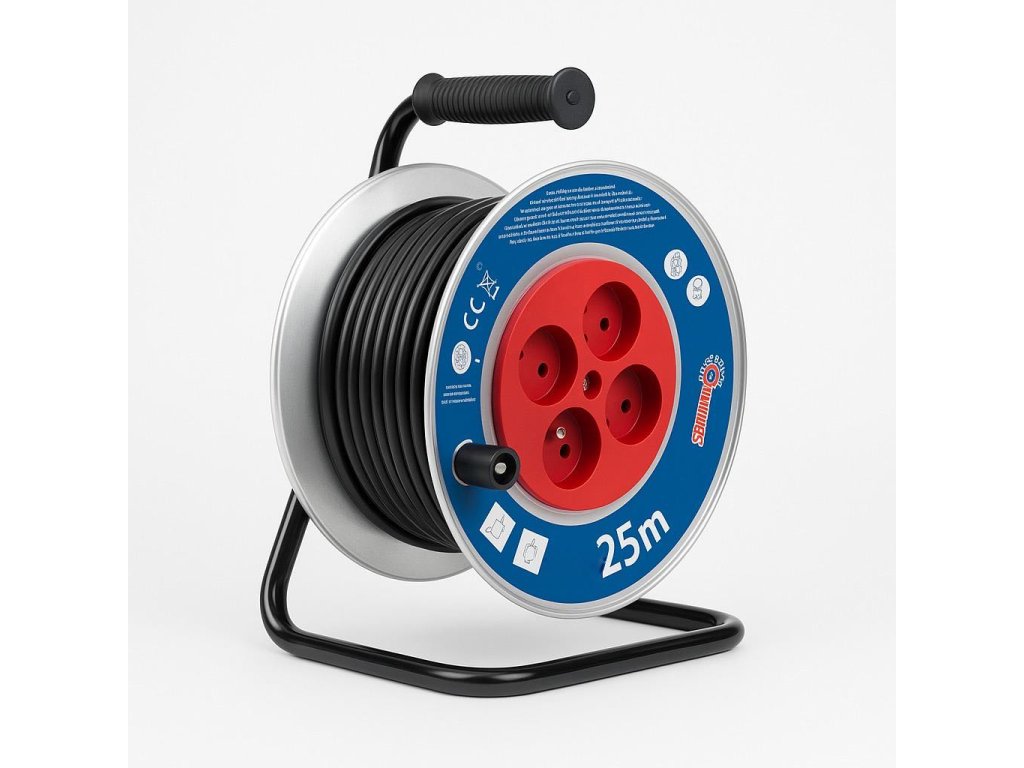 Bubnový prodlužovací kabel 25 m 3×2,5 mm², 4 zásuvky, kovový