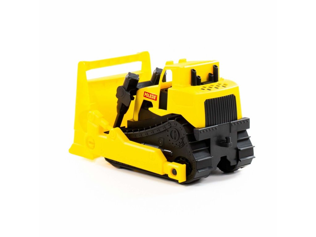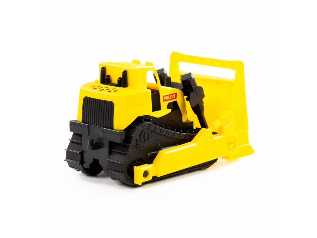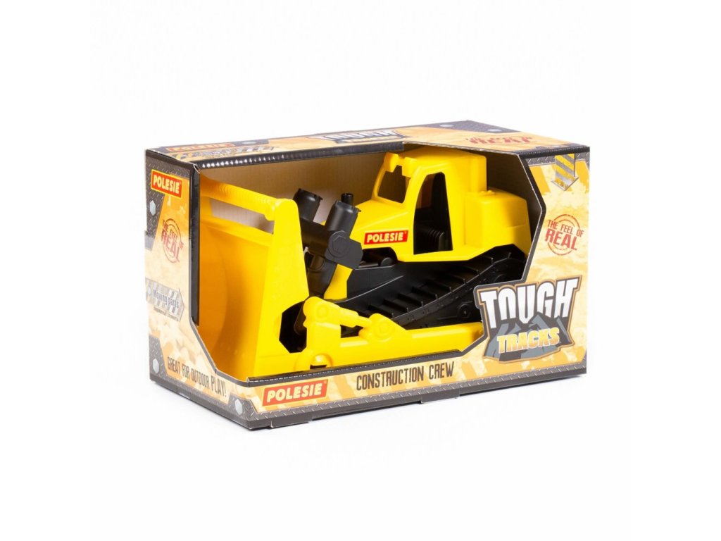 Buldozer je vyroben v barvách typických pro stavební vozidla. Vozidlo má housenková kola, která si poradí s různými povrchy na skutečném staveništi. Rameno lze zvednout a spustit.