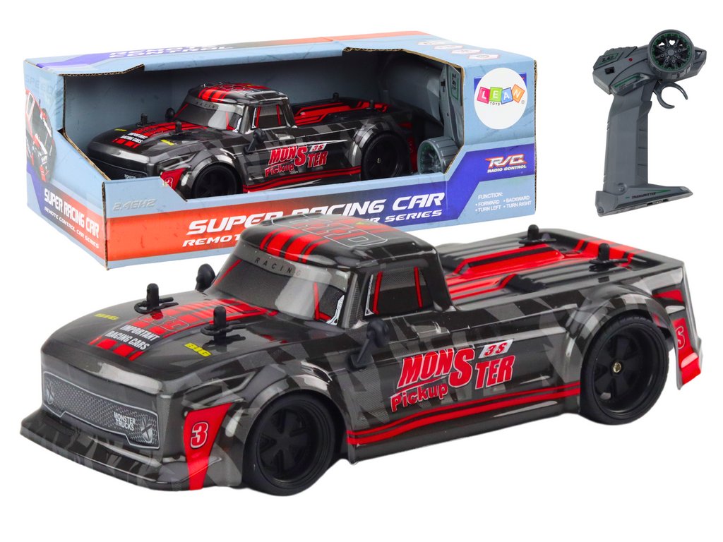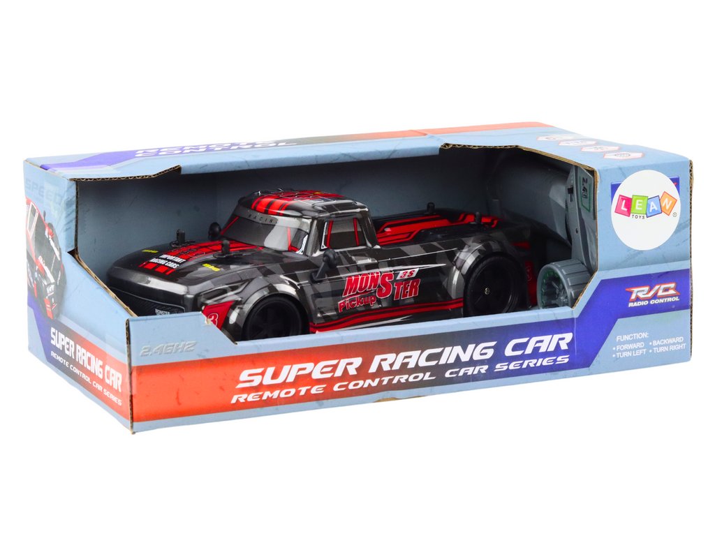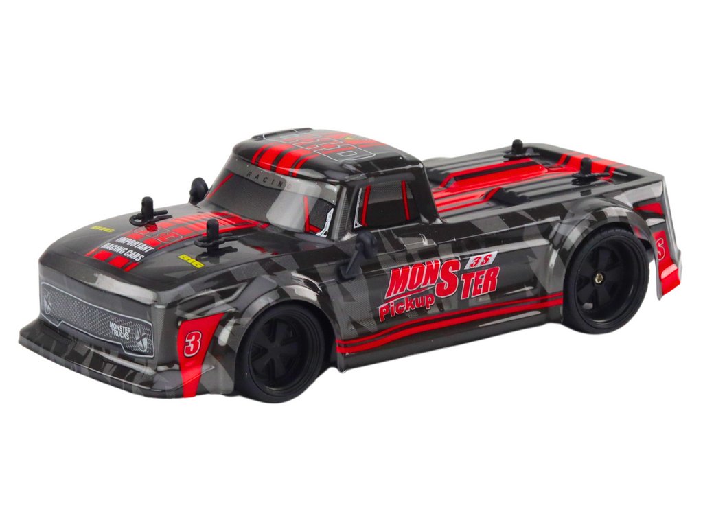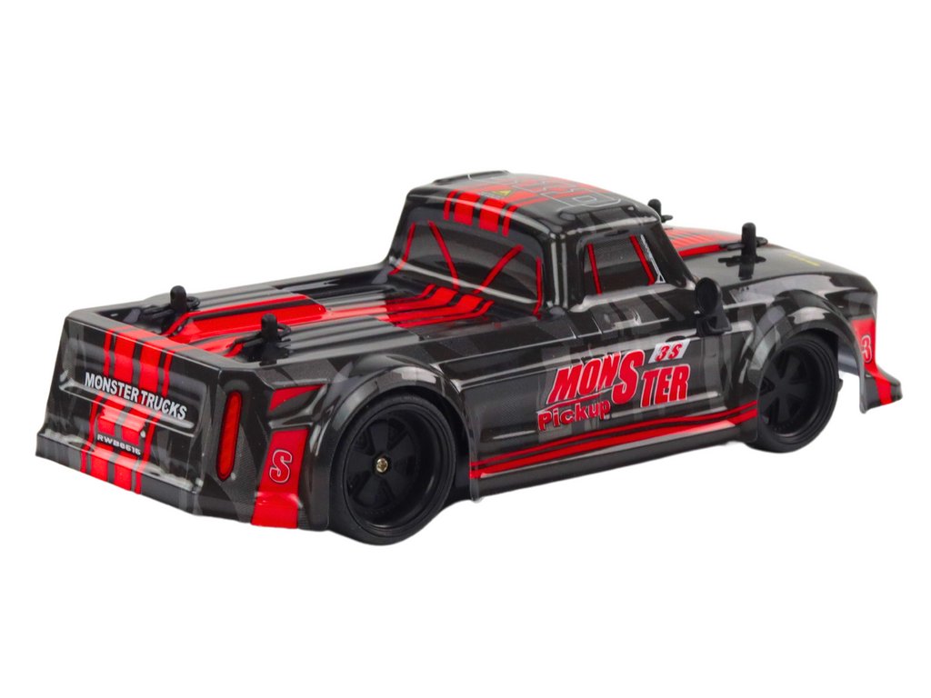 Zdalně řízené auto typu pick-up v černé barvě s červenými prvky je ideální volbou pro každého milovníka automobilů a zdalně řízených vozidel. Jeho funkce, atraktivní design a vysoká kvalita zpracování způsobují, že je to model, který přinese mnoho hodin vzrušující zábavy a nezapomenutelných zážitků.