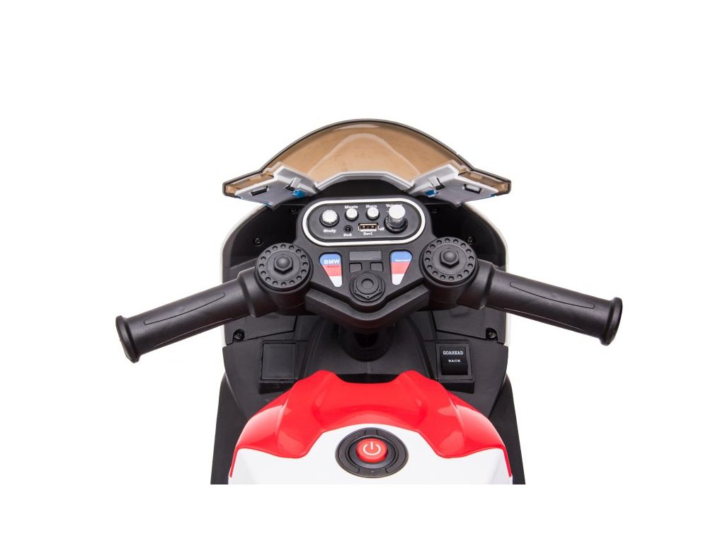 Dětská elektrická motorka s licencí BMW přijíždí na kolech s gumovým lemem a hudebním panel s MP3 a USB. Do terénu můžete vyrazit rychlostí od 3 do 5 km/h.