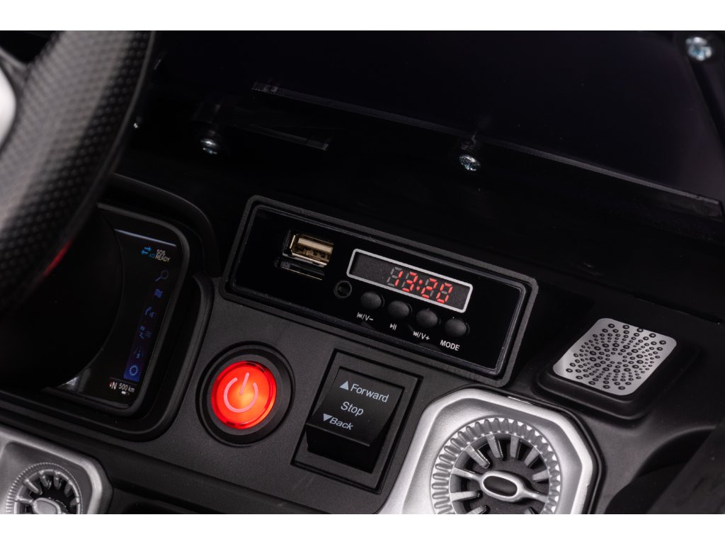 Dítě může vozidlo ovládat samostatně, ale plnou kontrolu nad jízdou může kdykoli převzít dospělý díky dálkovému ovladači. Ovladač je navíc vybaven bezpečnostním tlačítkem STOP, které okamžitě zastaví vozidlo a vypne všechny jeho funkce.