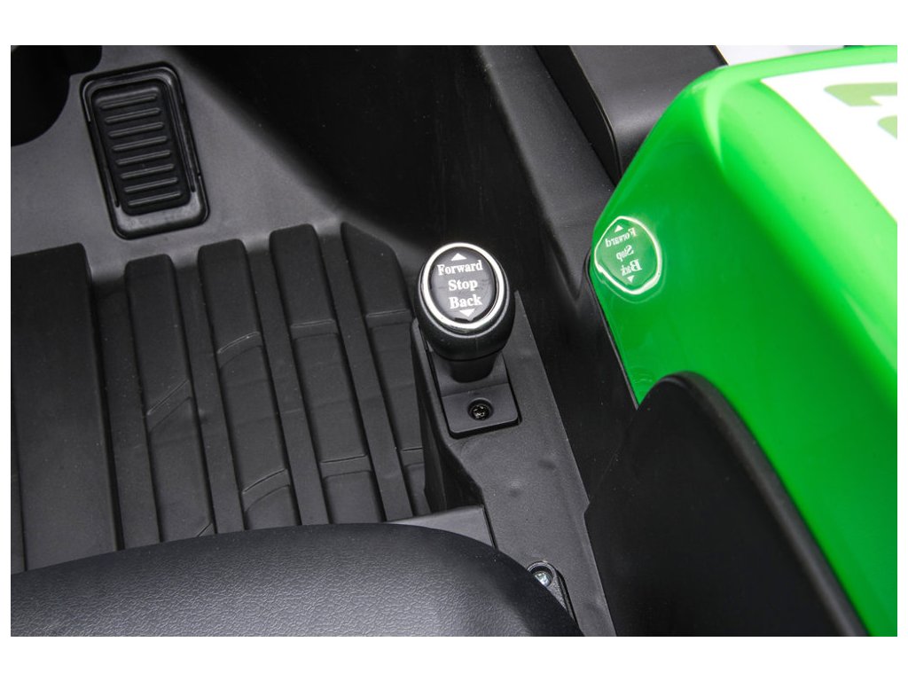 Dálkové ovládání 2,4GHz je vybaveno tlačítky se třemi rychlostmi a bezpečnostním tlačítkem Stop, které ihned zastaví vozidlo a vypne všechny jeho funkce.