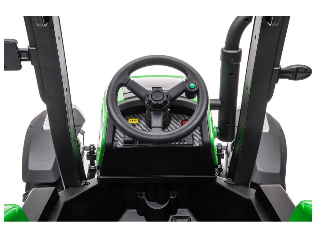 Dětský elektrický traktor BLT s ultra výkonným elektrickým motorem 2x200W a velkými EVA pěnovými koly hravě zvládne i nerovný terén.