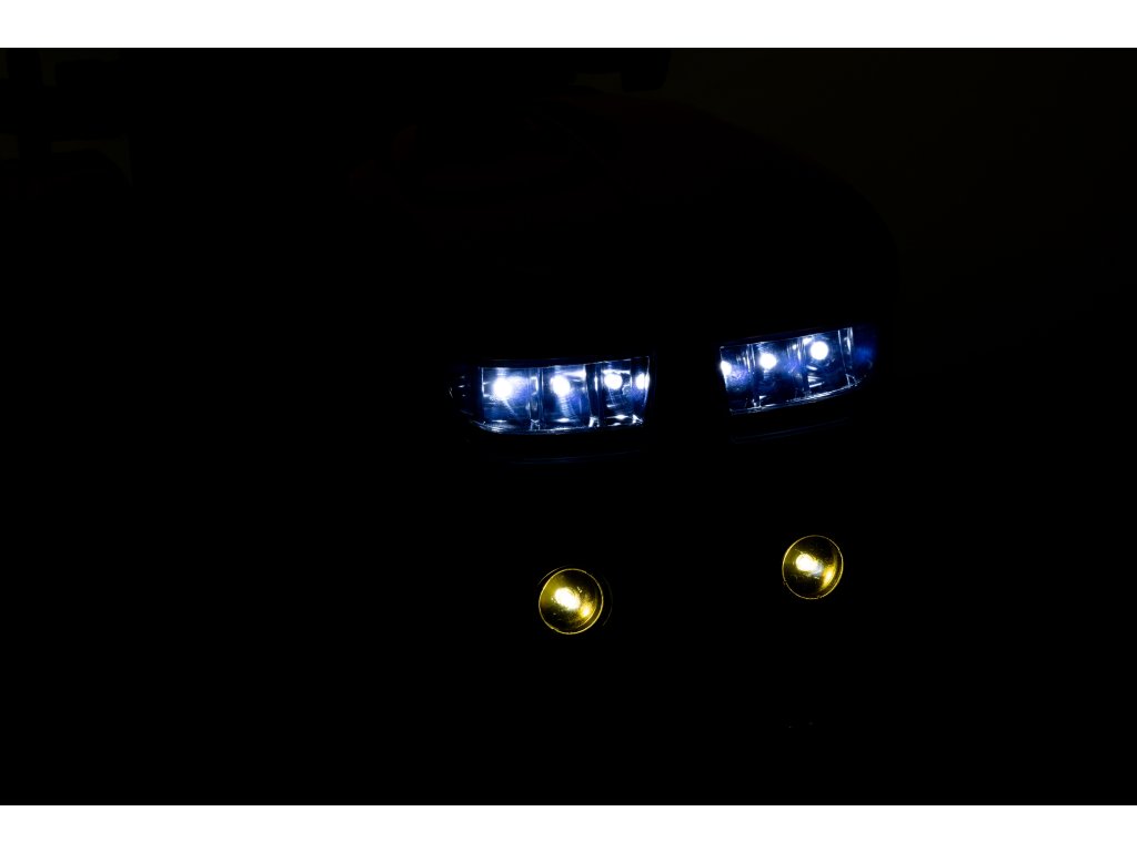- Osvětlení: Přední světla, displej stavu baterie na palubním panelu
