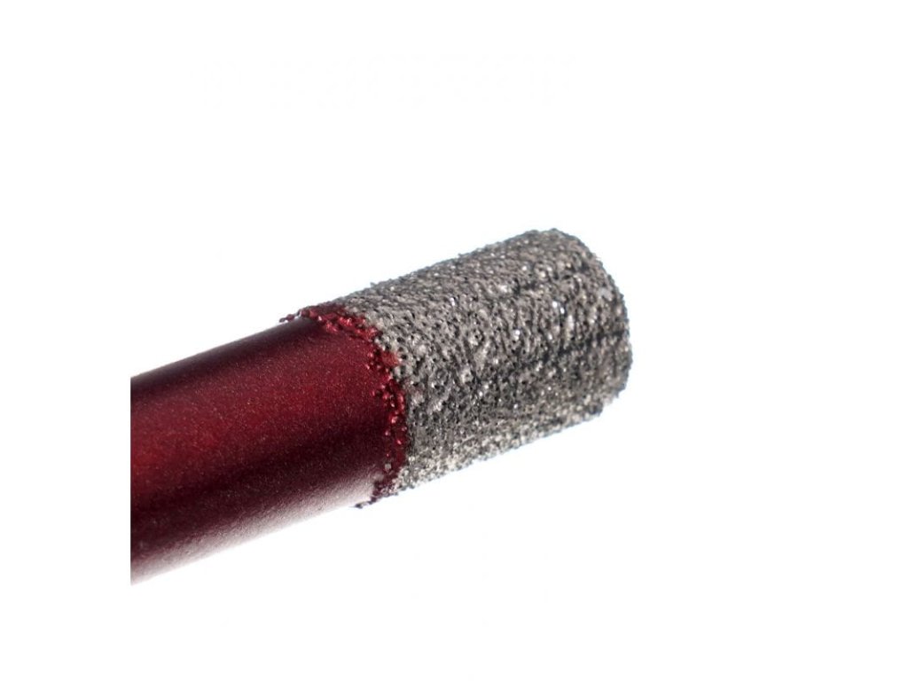 Vrták je vyroben z vysoce kvalitní uhlíkové oceli a pracovní část tvoří velmi jemný a hustý diamantový posyp, vakuově pájený na válcovém ocelovém těle.