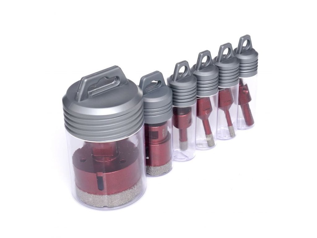 Sada diamantových jádrových vrtáků značky Kraft&Dele, model KD11219, slouží k vrtání bez příklepu "na mokro" v gresových, keramických, mramorových, porcelánových a tvrdých dlaždicích.