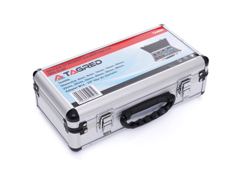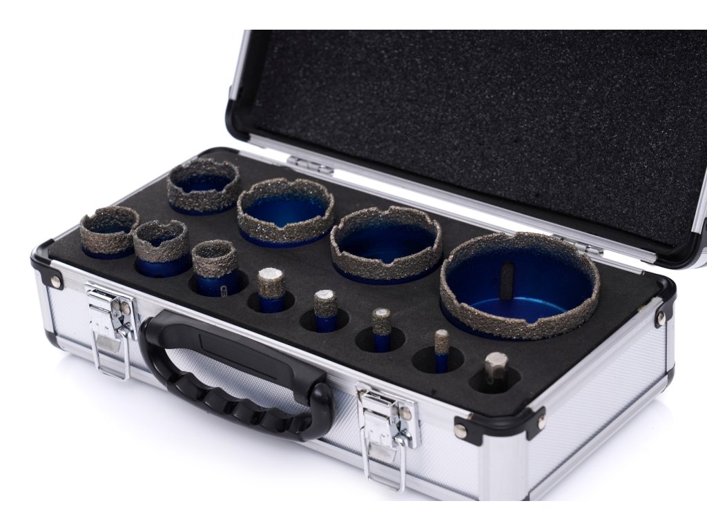 Diamantové korunky do keramiky, kamene, gresu, obkladů 6, 8, 10, 12, 20, 25, 28, 35, 45, 50, 68mm M14, kufřík, adaptér, sada 12 ks