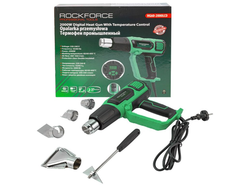 Elektrická horkovzdušná pistole, 2 stupně, 4 hubice, 600 °C, 2000 W