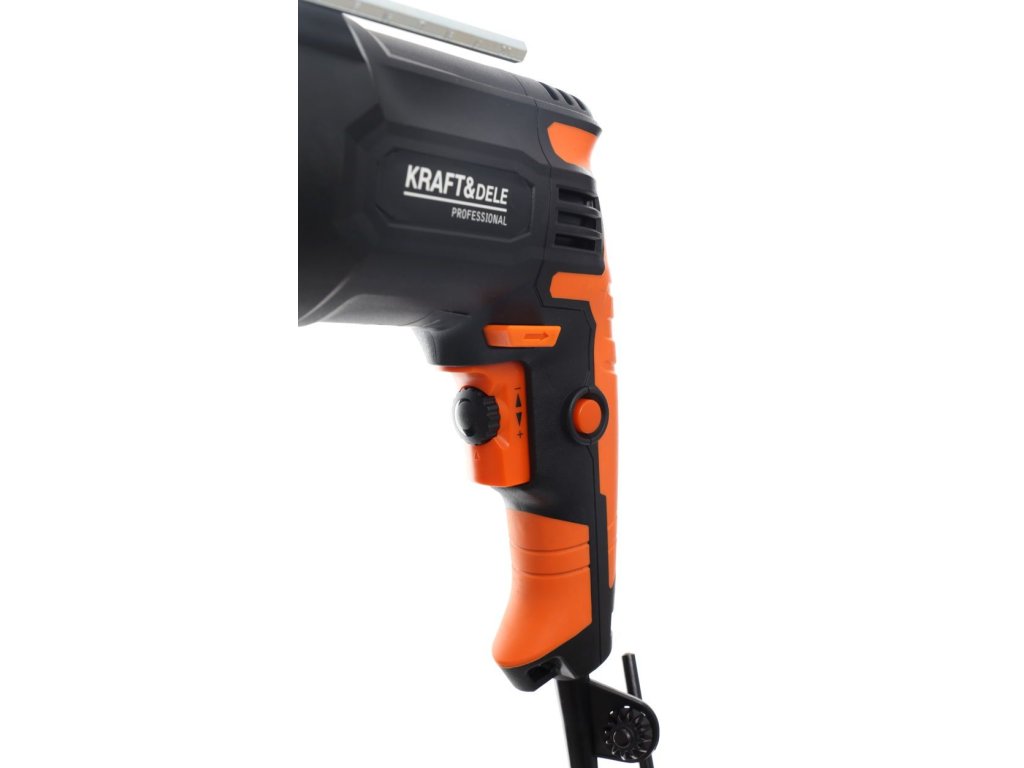 Elektrická příklepová vrtačka Kraft&Dele KD1687 s výkonem 1700 W je určena pro příklepové vrtání do zdiva, betonu a kamene, stejně tak pro vrtání v kovu, keramice, dřevu a plastu. Hlavní rukojeť je vyrobena ze speciálního protiskluzového materiálu, který usnadňuje držení přístroje v ruce. Jedná se o verzi vybavenou přídavnou boční rukojetí. Hlavu tvoří kovový materiál.