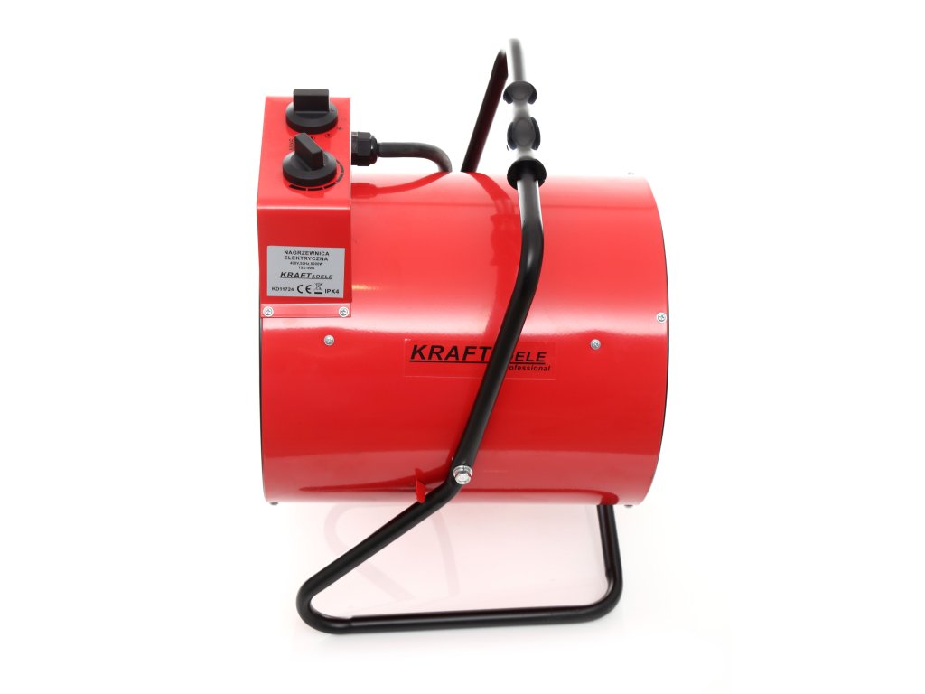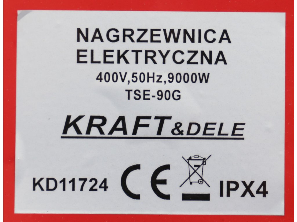Elektrická přímotopná kamna značky Kraft&Dele model KD11724 s výkonem 10 kW. Kamna mají vestavěný termostat.