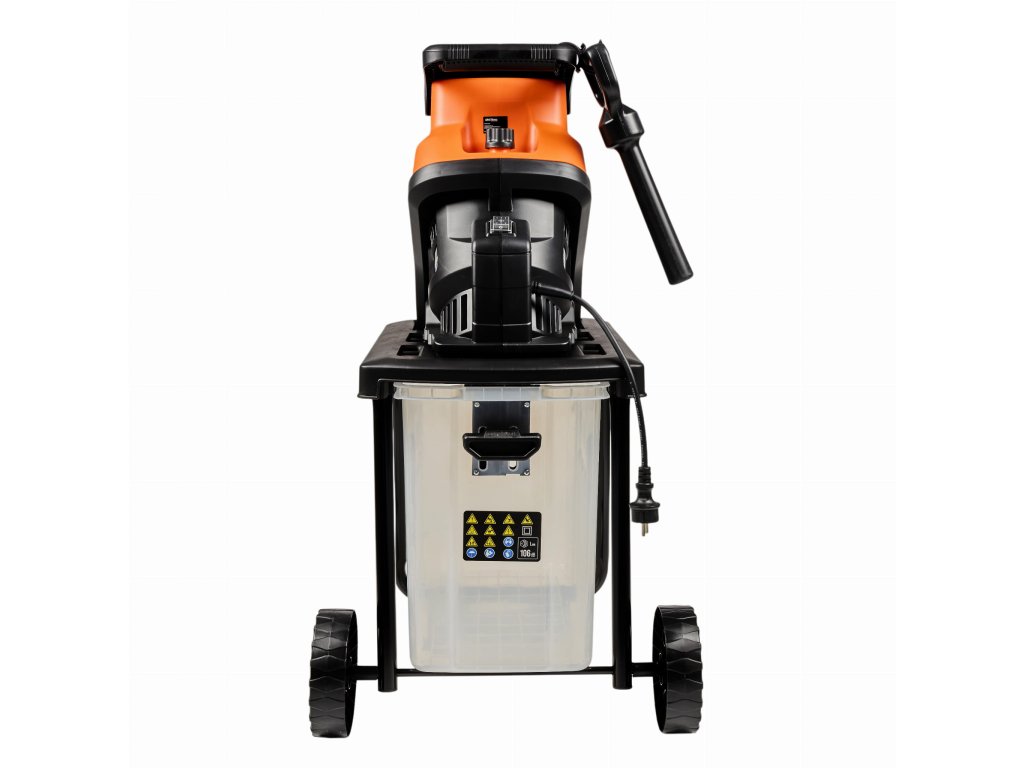 Drtič je vybaven moderním indukčním elektrickým motorem s vysokým jmenovitým výkonem 3000W. Je prakticky bezporuchový, nemá mechanické opotřebení, disponuje jednodušší konstrukcí a vysokou účinností. Elektrický drtič pracuje mnohem tišeji než benzínové stroje a je také lehčí, takže je výrazně mobilnější. Velkou výhodou zařízení je způsob jeho spuštění – stačí připojit napájecí kabel a stisknout tlačítko "START", a váš drtič se rychle pustí do práce na zahradě!