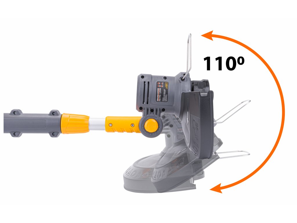 Nastavení úhlu stříhacího celku kromě nastavení rukojeti, má elektrická sekačka také funkci otáčení celé rukojeti vůči motorové hlavě. Po stisknutí tlačítka lze nastavit úhel ve pěti pozicích s maximálním úhlem odchýlení 110 stupňů.