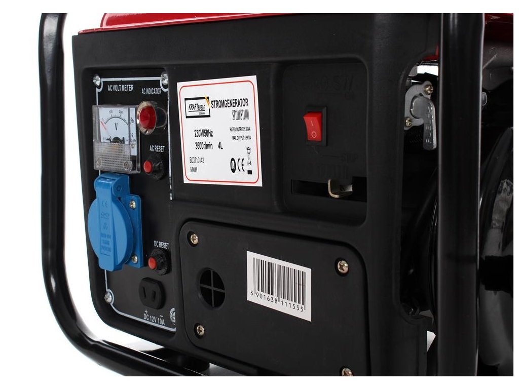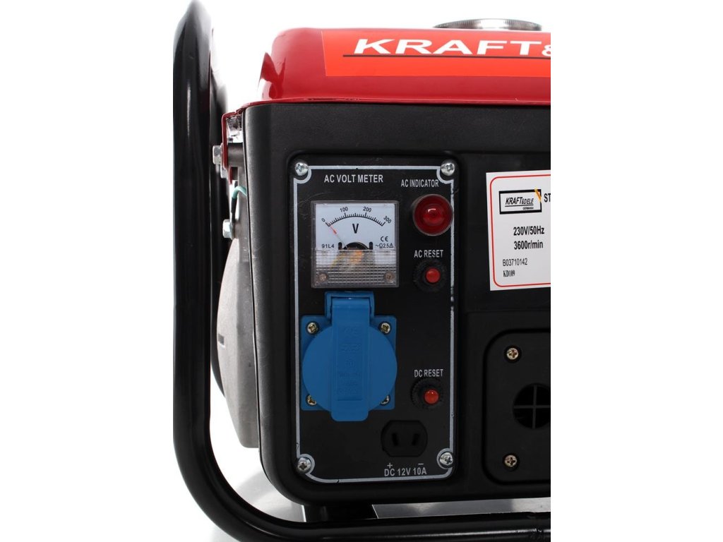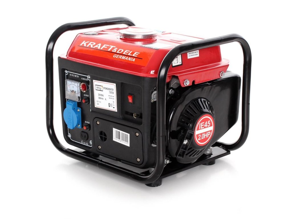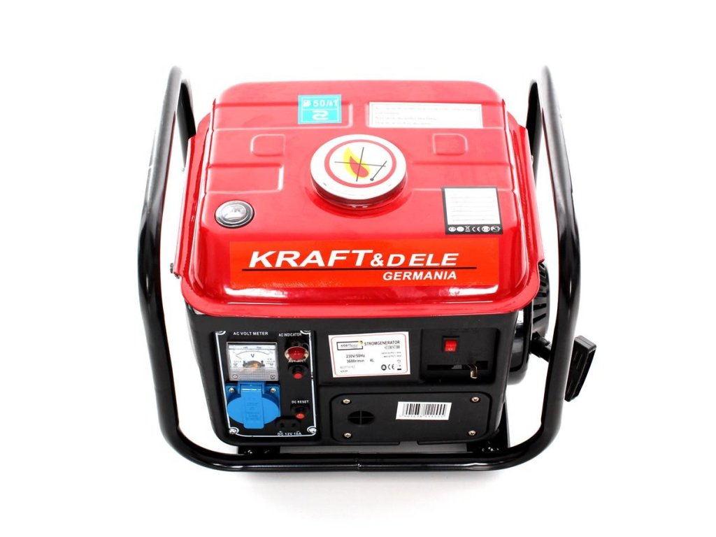 Přenosný jednofázový generátor elektrické energie označený KD109 značky Kraft&Dele je určen k výrobě střídavého proudu 220V-230V pomocí spalovacího motoru japonské konstrukce OHV, dvoutaktního o výkonu 2 HP a maximálním výkonu generátoru 1200 W.