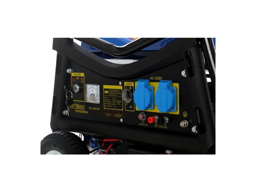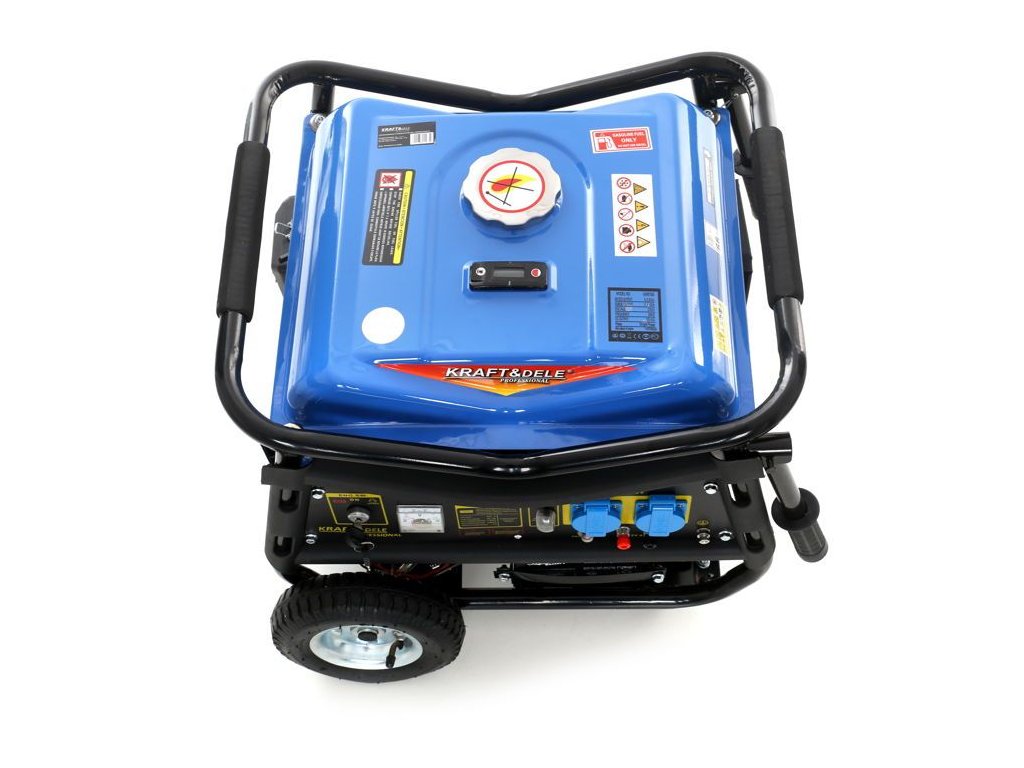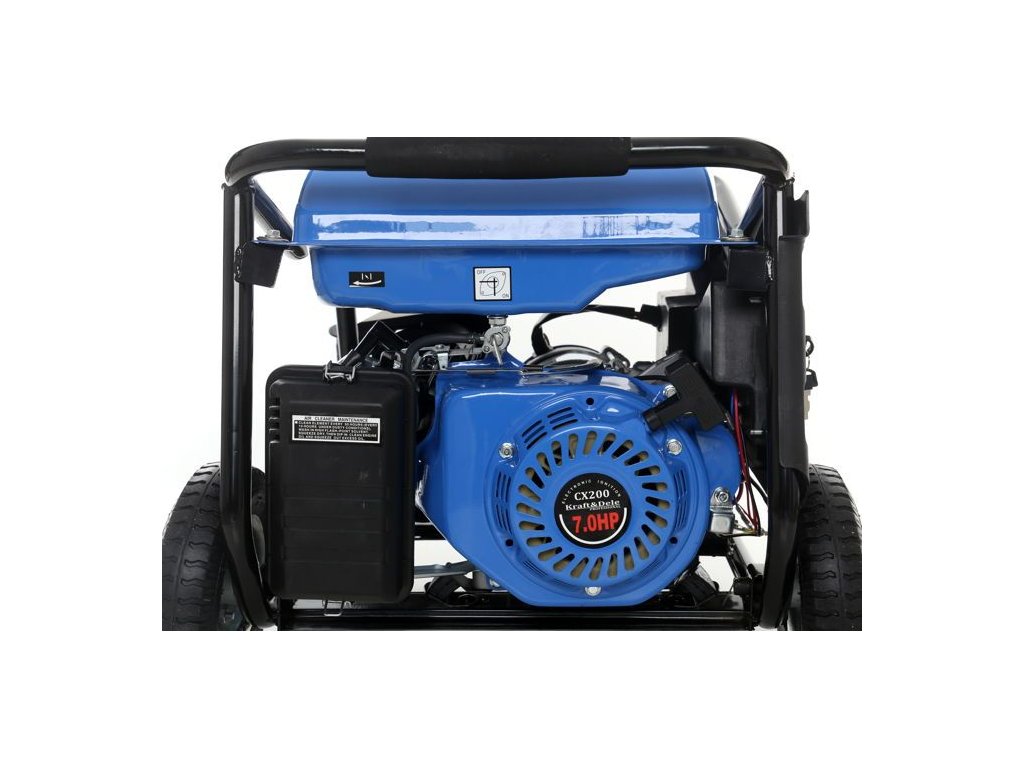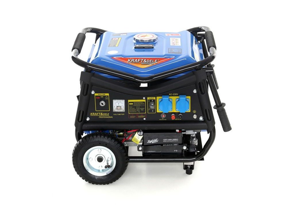Přenosný jednofázový generátor elektřiny označený jako KD144 značky Kraft&Dele je určen k výrobě střídavého proudu 220V-230V pomocí spalovacího motoru japonské konstrukce OHV 4-taktního s výkonem 7 HP a maximálním výkonem alternátoru 3000W.