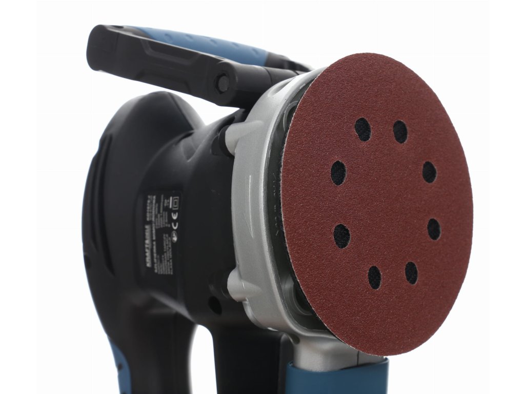 Výměna brusného papíru probíhá bez nářadí, kotouče jsou upevněny na suchý zip. V balení je také pytel na prach, díky čemuž je práce čistá.