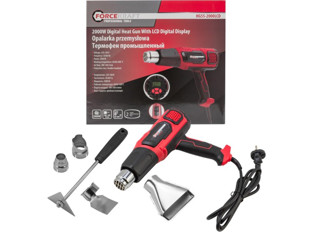 FORCEKRAFT Horkovzdušná pistole 2000 W, 2 rychlosti, 4 trysky, na barvy a dřevo