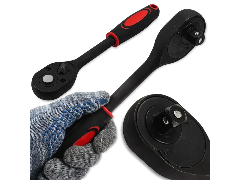 Ráčna s náhonem 1/2" je kompatibilní s širokým spektrem nástrčných klíčů – ideální pro práci u závitových spojů, mechanické opravy, pneuservisy, automobilový průmysl nebo montáž ocelových konstrukcí.