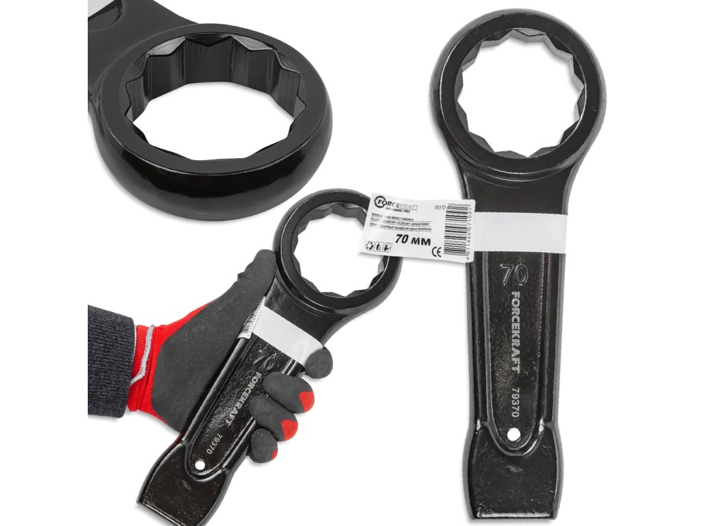FORCEKRAFT rázový očkový klíč 70 mm, který nezklame ani v nejtěžších podmínkách. Pro velké šrouby, velké síly a velkou odpovědnost.