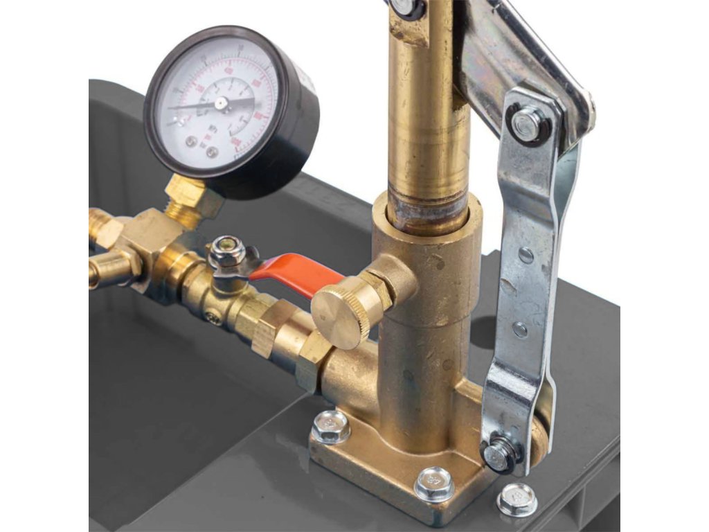 Tlaková zkušební pumpa je spolehlivé profesionální zařízení pro kontrolu těsnosti a provozního tlaku v různých hydraulických systémech. Díky pevné konstrukci a přesnému manometru umožňuje rychlé odhalení úniků a posouzení technického stavu instalace.