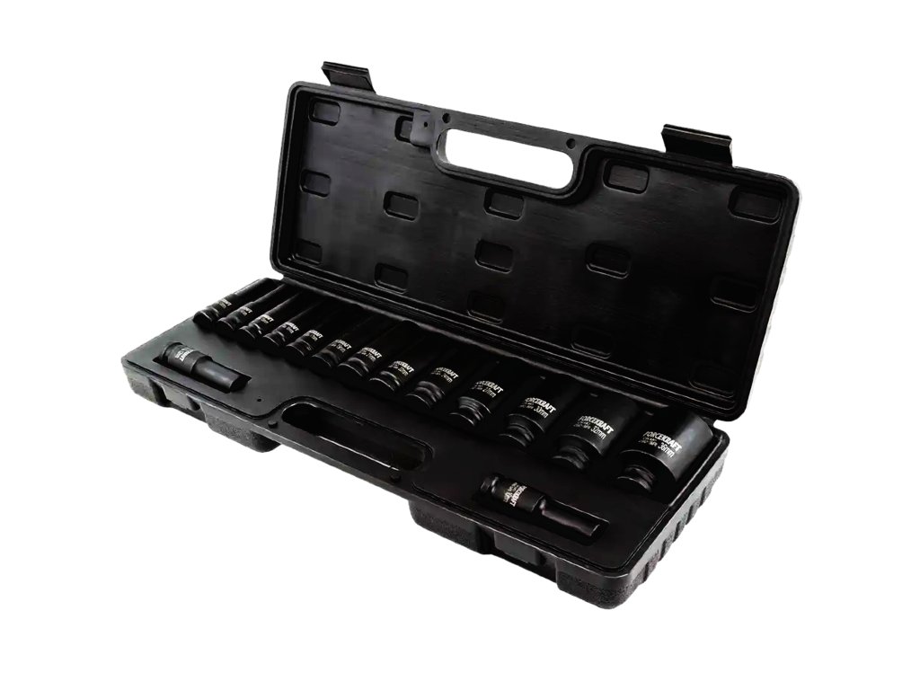- 15 ks dlouhých rázových hlavic 1/2" – v rozměrech od 10 do 36 mm.