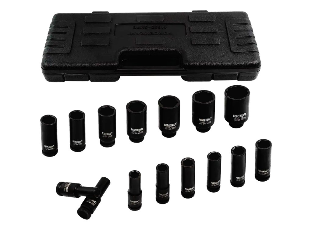 Forcekraft FK-4166D-5MPB je profesionální sada 15 dlouhých rázových hlavic 1/2", navržená pro intenzivní použití v dílnách. Sada obsahuje nejpoužívanější rozměry šestihranných hlavic od 10 do 36 mm, díky čemuž je ideální pro autoservisy, opravy a montáže.