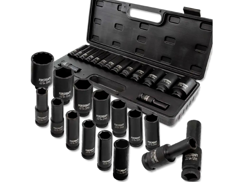 FORCEKRAFT Sada hlubokých rázových hlavic 1/2" 10–36 mm, 6hranné, 15 ks