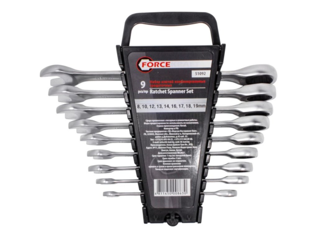 FORCEKRAFT Sada očkoplochých klíčů s ráčnou, 9 ks