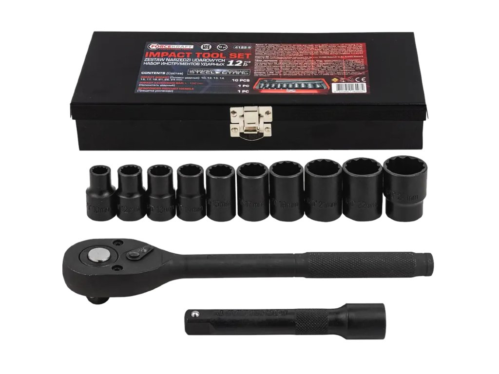 FORCEKRAFT Sada rázových nástrčných hlavic 12 ks, 1/2" + kufr