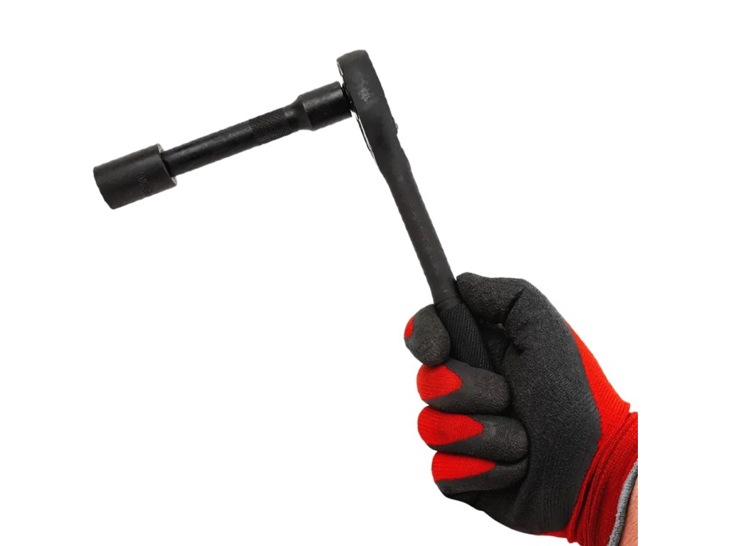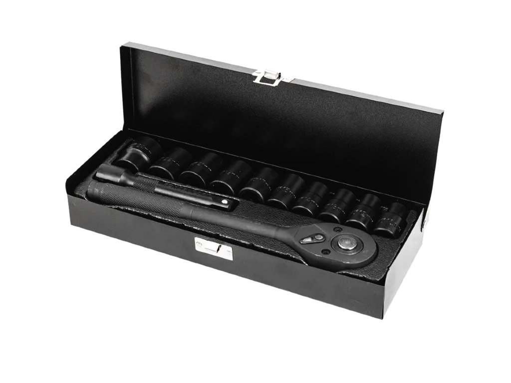 - Rázová ráčna 1/2" – zesílená konstrukce odolná vůči vysokému zatížení rázem, vybavená protiskluzovou rukojetí.