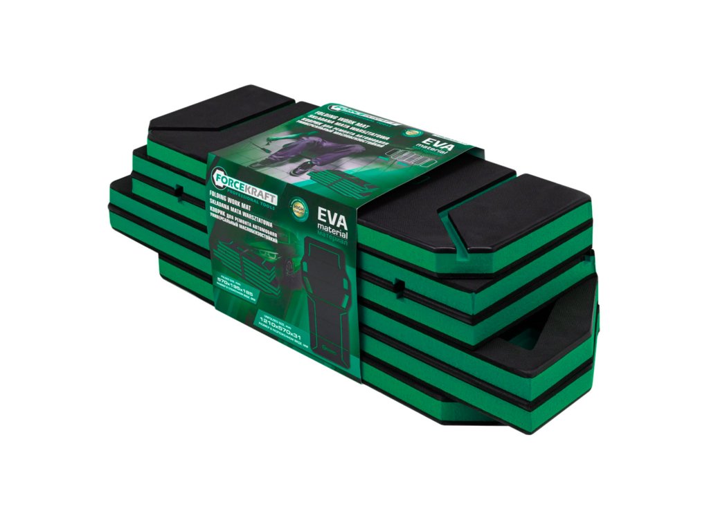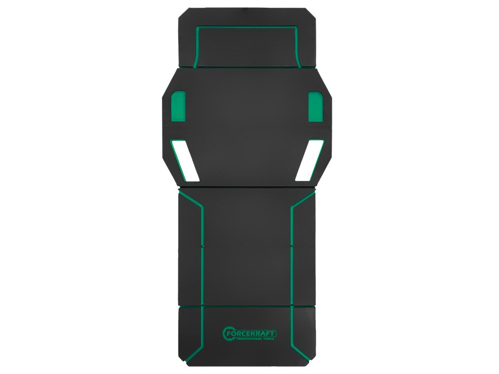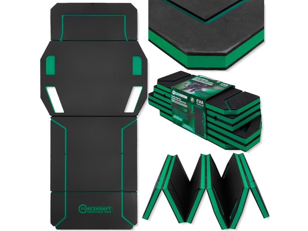 Skládací dílenská podložka Forcekraft je všestranný pomocník pro každého, kdo pracuje na autech, na zahradě, v garáži nebo při domácích opravách. Díky vysoké odolnosti vůči oleji, benzínu a vodě je vhodná jak pro intenzivní dílenské použití, tak pro nouzové opravy v terénu.
